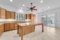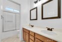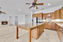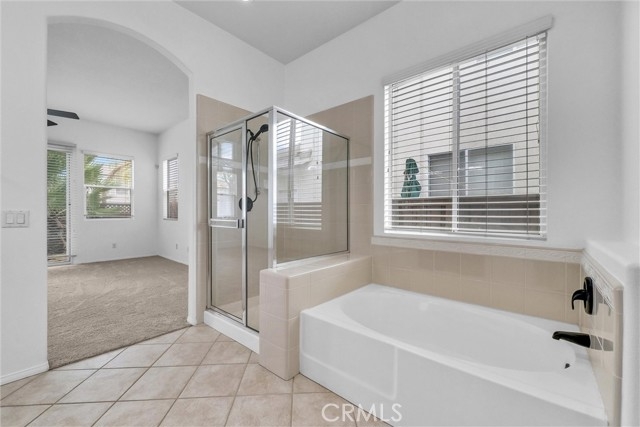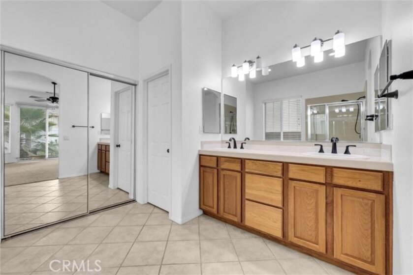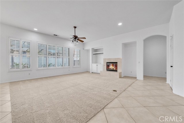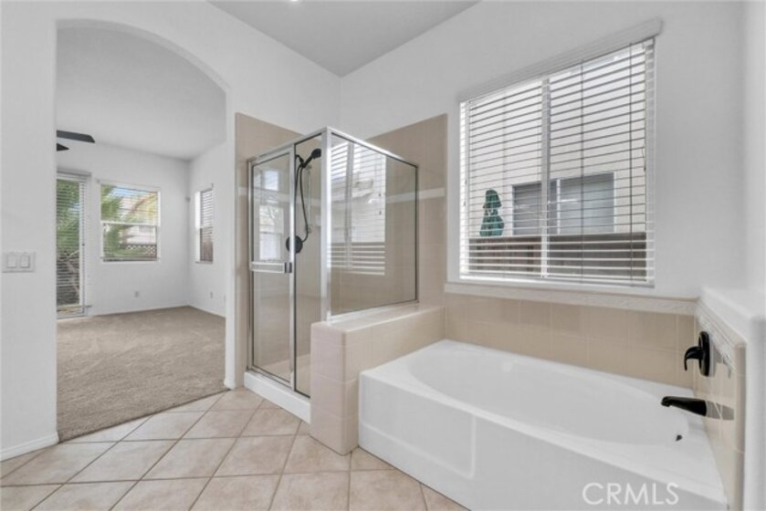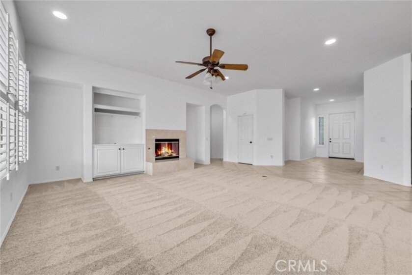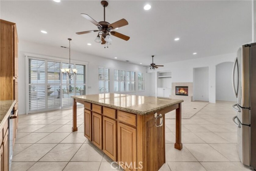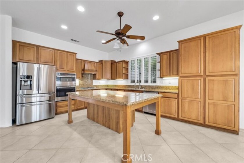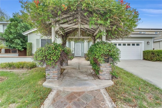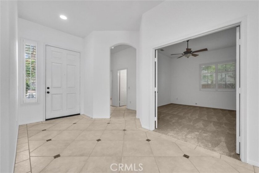 Nestled in the highly desirable Vintage Reserve community of Murrieta, this beautifully updated single-story home offers 3 bedrooms, 2 bathrooms, and approx. 2,025 sq ft of living space on a well-appointed 6,098 sq ft lot. From the moment you arrive, its curb appeal shines with a lush garden arbor entry, charming courtyard, and custom walkways. Inside, a formal entry welcomes you with abundant natural light and graceful arched doorways throughout. The spacious family room is anchored by a tile fireplace with a built-in TV cabinet and flows seamlessly into the dining area, where sliding glass doors open to serene backyard views. The gourmet kitchen is a centerpiece, featuring a custom hood vent, expansive cabinetry with decorative open shelving, beveled granite countertops, a large island with breakfast bar, and upgraded stainless steel appliances including a French door refrigerator, double ovens, and dishwasher. The master suite is a private retreat, complete with sliding door access to a side patio, a walk-in closet, and a spa-inspired bath with dual sinks, a designer-tiled walk-in shower, and a soaking tub framed in stylish tile accents. Two additional bedrooms are generously sized, and the hall bath offers double sinks and a shower-in-tub. The laundry room includes cabinetry and a utility sink with pull-out faucet for convenience. Interior upgrades include fresh paint, ceramic tile flooring with new carpet in bedrooms, plantation shutters and blinds, recessed lighting, upgraded ceiling fans, new black matte bath fixtures, and a new AC unit. Best of all, the home comes with solar panels and a fully paid Tesla wall mount, providing long-term energy savings and efficiency. Outdoors, the backyard is an entertainer’s dream, highlighted by an expansive wood lattice patio cover, custom stamped concrete, tranquil waterfall feature, manicured lawn, stucco-and-brick planters with lighting, and mature trees and shrubs. Located in one of Murrieta’s most sought-after neighborhoods, you’ll enjoy close proximity to top rated schools, parks, shopping, dining, and easy freeway access.