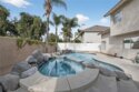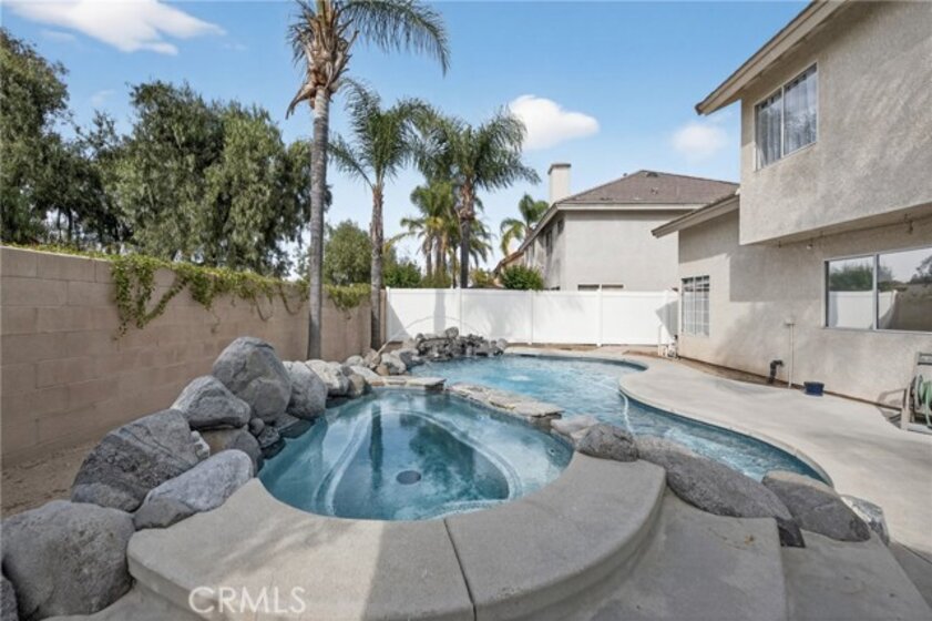 This wonderful home has amazing giant pine trees welcoming you upon your arrival. The custom walkway has lush landscaping and leads you to semi-private sitting area. Through the double door entry you will find a formal living/dining room area with new tile throughout the downstairs that continues to the large family room with fireplace, open kitchen with garden window, new granite counters, large pantry, new stainless steel appliances and custom french doors that opens up to the backyard. The large master bedroom has a retreat area and/or 4th bedroom. In the backyard you will find the custom in ground Pool & Jacuzzi W/ Waterfall & Fountain (New upgraded Filters, Pumps, LED Lights and Heater), upgraded fences and gate, mature grape vines, orange tree and lush mature palm trees, a true entertainers paradise. This home also has a SunRun Solar System (Tier 2 Pricing Grandfathered in), low tax rate and NO HOA...This home truly has it all!