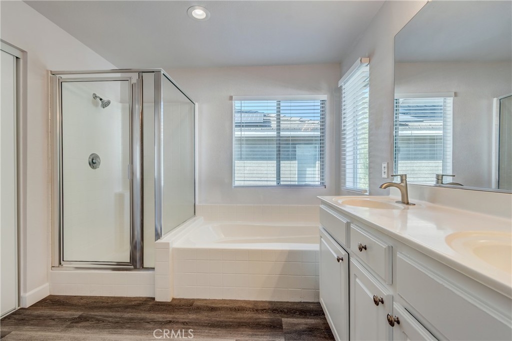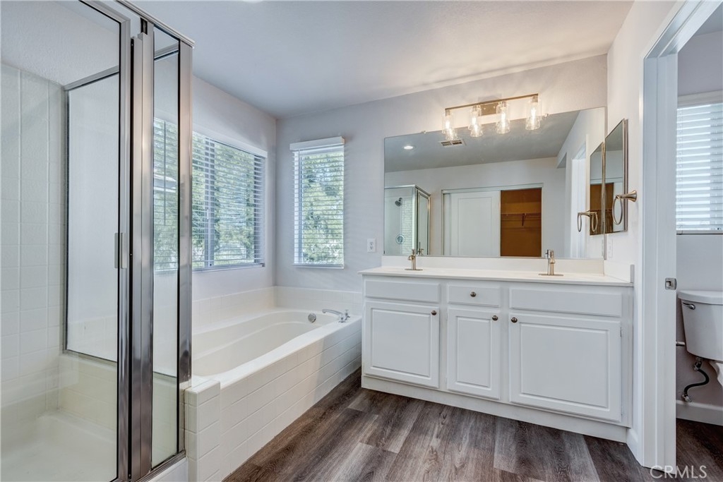 Beautiful FULLY RENOVATED 3 Bedroom 2 1/2 Bath Home in the Old School House Bungalows Gated Community! Step inside to a fresh, contemporary interior featuring brand-new, laminate wood flooring that flows seamlessly throughout the entire home. The space has been freshly painted from top to bottom, creating an immaculate canvas ready for you to move in. Comfort is guaranteed year-round with a brand-new central A/C system and new ceiling fans installed in every room. The kitchen is a true highlight, completely upgraded with a sleek preparation island, quartz countertops, all new white shaker cabinetry, and a full suite of brand-new stainless steel appliances. The bathrooms have been transformed into private sanctuaries with modern finishes, new furniture, and fixtures. The master in-suite bathroom provides a luxurious escape, featuring a large layout with a full-size bathtub separated from a walk-in shower. Live a resort-style life with access to exclusive community amenities designed for relaxation and recreation: Enjoy a sparkling pool, relaxing spa, children’s playground, and gated access providing privacy & security! The community is conveniently situated close to top-rated schools and shopping centers, including the nearby Promenade Temecula mall, the renowned Temecula Wineries, & the 215 & 15 freeways for easy commuting access or weekend getaways! Don't miss this rare opportunity to own a fully renovated property where every detail has been thoughtfully addressed.