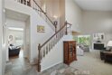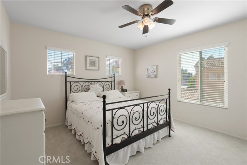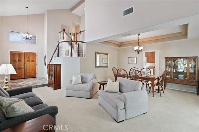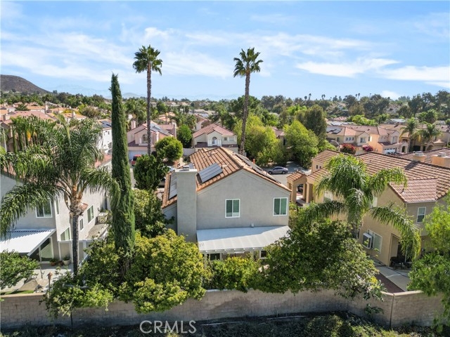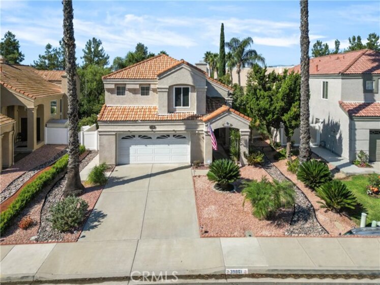 VALUE PRICED HOME!! SHOWS SO PRETTY!! BEAUTIFUL, WELL-CARED FOR 2 STORY HOME, NO HOA, LOW TAXES, HIGH HIGH CATHEDRAL CEILINGS!! ****ALL WINDOWS AND 2 SLIDING GLASS DOORS ARE ONLY ABOUT 1 YEAR OLD!! ALUMAWOOD PATIO COVER IS NEWER!! LEASED SOLAR!!! NO MORE EXPENSIVE ELECTRIC BILLS!! ALL THE BEDROOMS ARE LARGE!! The wall color throughout is a nice neutral color palette. You will be pleasantly surprised when you tour this home! Nice large tiled entryway. The front living room has 2 story ceilings, is light filled, offers a lovely fireplace and the first sliding glass door giving access to the rear yard. The dining room is right off the kitchen, has a tray ceiling and is very roomy with a backyard garden view. The kitchen has a very warm feeling, rich wood cabinet color, earthy granite counters, plenty of storage, tray ceiling with recessed lighting, space for an eat-in dining table with another sliding glass door to the backyard. The family room is next to the kitchen area for easy open access and convenience. On the 2nd floor, you'll love and appreciate MORE TALL ceilings!! The primary is oversized with cathedral ceilings, giving it such a large open feeling. The en suite has been updated with a custom shower enclosure, tub surround, dual sinks with a stone countertop and a separate vanity seating area! Down the hallway, the full bathroom has a large white vanity with dual sinks and a separate room for the shower. You will find the other 3 bedrooms upstairs opposite the primary bedroom. All bedrooms have ceiling fans! The backyard is so nice and manicured. You'll love the cover of the newer Alumawood patio cover, stamped & colored patio concrete, mature trees and low maintenance turf. The entire property has low maintenance landscaping and like-new vinyl fence! The alarm system stays and is only about 1 year old. This location is great! It's easy access to the 215, walking distance to the large neighborhood park, Los Alamos Hills Sports Park is minutes down the road, walk to church, restaurants, the local veterinarian's office, the gym, etc. Only 1.2 miles to Rail Ranch Elementary. Award winning Murrieta Schools! DON'T MISS OUT ON THIS HOME!!! FOR THE PICKIEST BUYERS!!