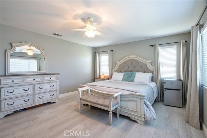 Price Improvement!! Have you been waiting for a home in a perfect location? It's ready for you! Spacious 5-Bedroom, 3 bath Home on a Prime Cul-de-Sac location! Nestled in the highly desirable Central Park community of Murrieta, this beautiful home offers comfort, space, and functionality. Step inside to find a welcoming layout featuring a downstairs bedroom and bath—ideal for guests or multigenerational living. The entertainers delight kitchen comes with a large center island, stainless steel appliances, granite countertops & white cabinetry. The open concept space flows into the large family room with a fireplace & built-in media niche. Situated on an expansive 10,000+ sq ft lot with lot's of room for entertaining! Sliding doors to the large backyard with no rear neighbors, extra side patio plus an Alumawood patio cover! The upstairs primary suite boasts a walk-in closet and a spacious ensuite bath with a separate shower, garden tub & dual vanity sinks. A large loft area separates two of the upstairs bedrooms, providing a perfect space for a playroom, home office, or media center. You'll also enjoy the convenience of an indoor laundry room. The attached garage has epoxy flooring, cabinets for storage and has a Tesla Powerwall. TESLA SOLAR SYSTEM WILL BE PAID OFF! Central Park residents enjoy access to fantastic community amenities including a pool, clubhouse, walking trails, and tot lot, all while benefiting from low taxes and a low HOA. Just minutes from schools, shopping, and freeway access, this home checks all the boxes! Don’t miss the opportunity to make this Central Park gem your own!
