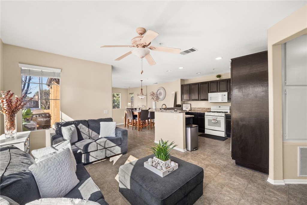 Welcome to 39942 Alpine Union St #C, a spacious 3 bedroom, 2 bath condo offering 1,408 square feet of beautifully designed living space inside a desirable gated Murrieta community. This light-filled home features an open-concept floor plan with a generous living room centered around a cozy fireplace, creating the perfect space to gather, unwind, and make memories. The living and dining areas flow seamlessly into the kitchen, ideal for entertaining or everyday living. The kitchen offers granite countertops, abundant cabinetry, ample prep space, and a convenient breakfast bar. The primary suite provides a peaceful retreat with a large walk-in closet, dual sinks, and a private en-suite bath. Two additional bedrooms offer flexibility for family, guests, or a home office. Additional highlights include an indoor laundry room, grey laminate flooring throughout, private balcony for morning coffee or evening relaxation, and direct access to an attached 2-car garage. Enjoy the comfort and security of gated community living, along with resort-style amenities including a sparkling pool and spa, all conveniently located near shopping, dining, parks, and major commuter routes.