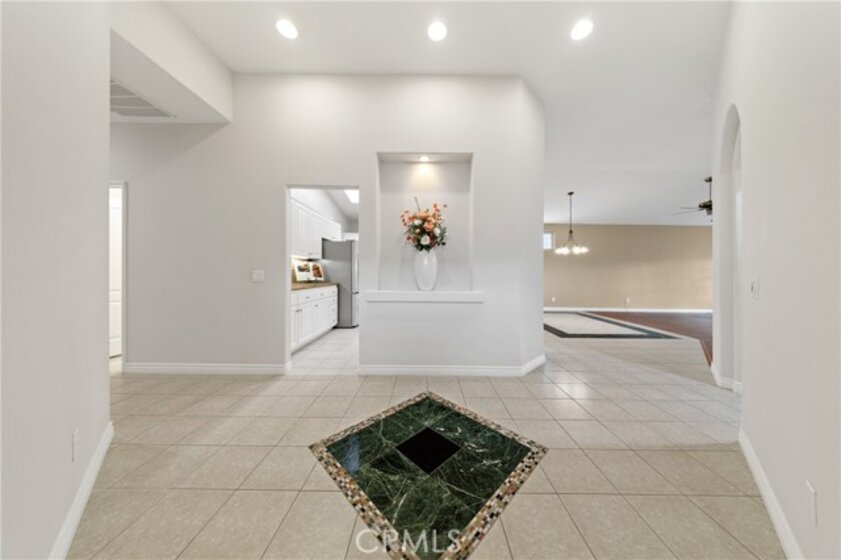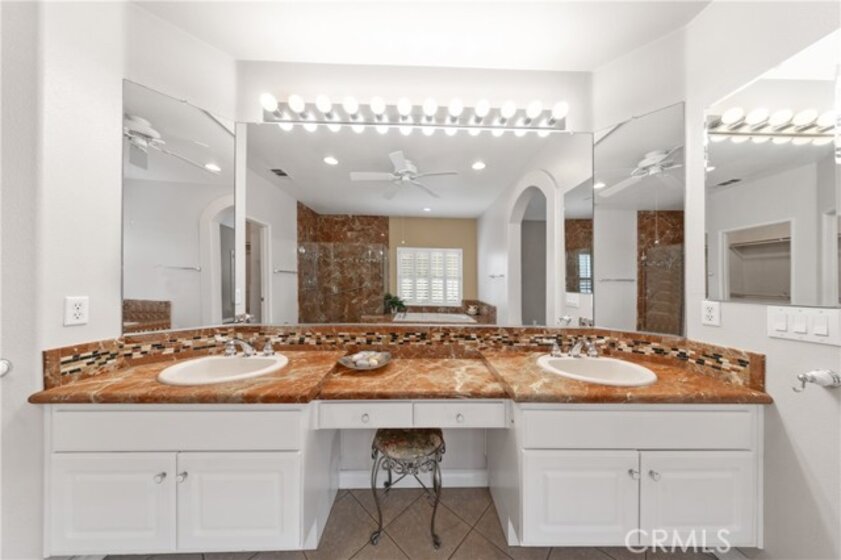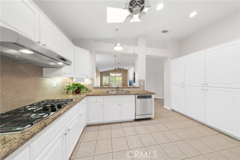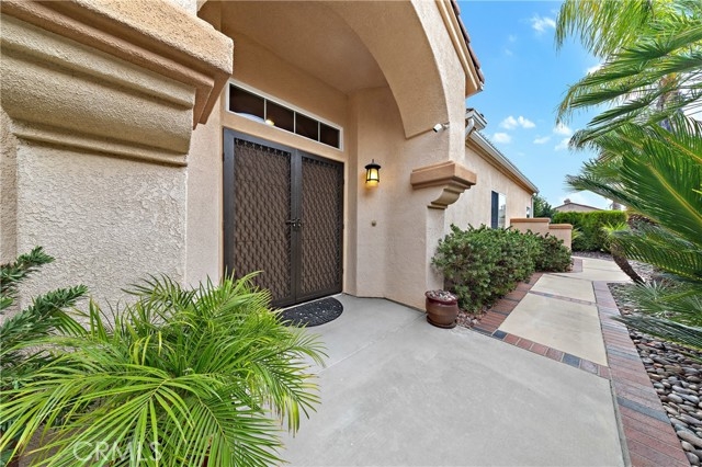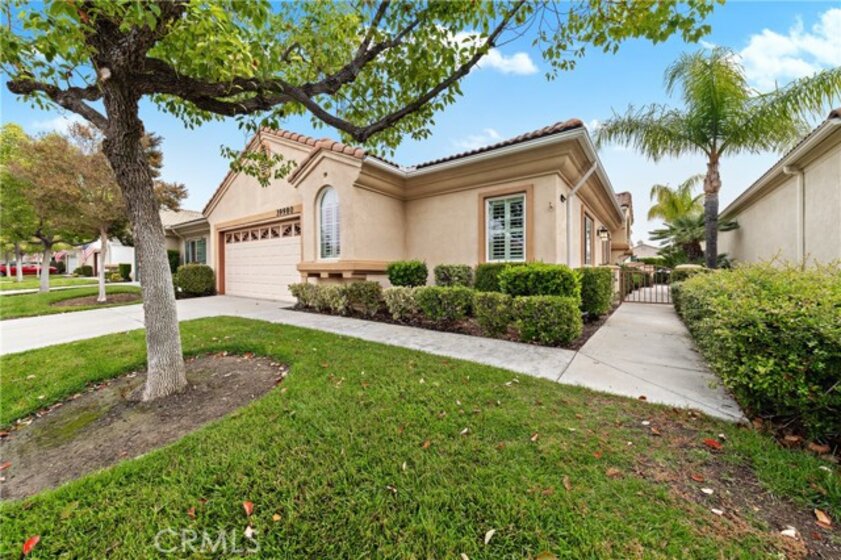 BEAUTIFUL SINGLE STORY 2,100 square foot home in The Colony, one of SoCal's most desirable GATED SENIOR COMMUNITIES. A brick-accented walkway welcomes you to the double entry doors with security screens. Featuring plantation shutters throughout, upgraded tile & wood type flooring, wide baseboards & soaring ceilings. The large kitchen boasts white cabinets, stainless appliances, granite countertops and so much storage space with convenient pull-out shelves in many cabinets. The spacious great room is perfect for family gatherings with a fireplace & media niche. Walk out onto your solid aluminum patio cover with views to a WIDE NATURAL GREENBELT, AFTERNOON SHADE & easy-care landscaping. The spacious primary suite has plenty of room for your bed, a sitting area & offers a walk-in closet with built-in storage. The sumptuous bath is finished in spectacular marble with dual sinks, large soaking tub & a shower with a luxury rimless door. One of the bedrooms has built-in desks/storage cabinets and a walk-in closet with shelving. The 3rd bedroom is oversized and has a guest bath nearby. Indoor laundry with a sink, lots of storage cabinets, pull-out shelves and washer/dryer are included. The garage has lots of built-in cabinets, a workbench area, room for a golf cart + 2 cars & a newish garage door opener. You will love the ENERGY SAVING FEATURES of Low-E windows, attic fan, attic heat shield & extra attic insulation. Water heater installed in 2022 with a circulating pump. Whole house water filtration system replaced in 6/2023. The Colony is a PREMIER GATED SENIOR COMMUNITY for ages 55+ with a RESORT CLASS CLUBHOUSE, year-round pool, 2 spas, lighted pickle ball/paddle tennis and tennis courts. You can enjoy the gym, library, ping pong, billiards, hair/nail salon. There are groups & activities for all interests with an auditorium for shows, dances, banquets, concerts, movies, bingo & parties for all occasions. A privately owned 18-hole golf course is inside the gate. The HOA waters & maintains all front landscaping. Guard gated entry and 24-hour security patrol give you peace of mind. Close to stores, restaurants, medical, casinos and wineries. You will love this turn-key home, ready for you today. Welcome to the Colony with friendly neighbors and sense of community as you enjoy TRUE RESORT STYLE SENIOR LIVING.