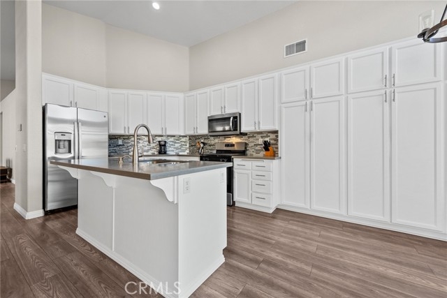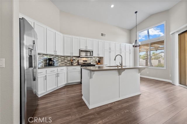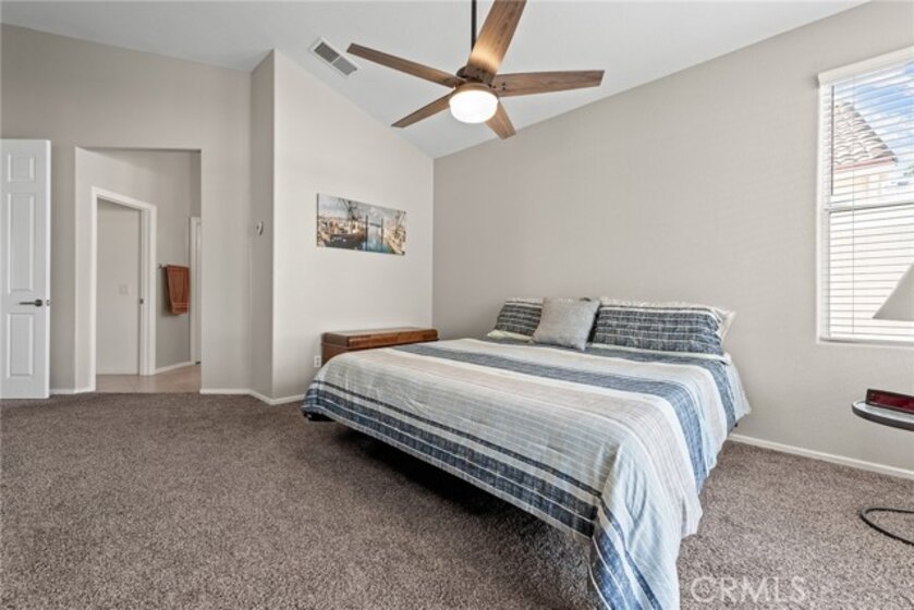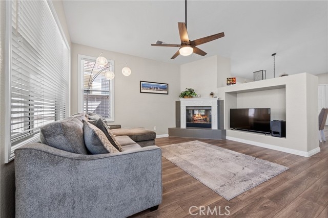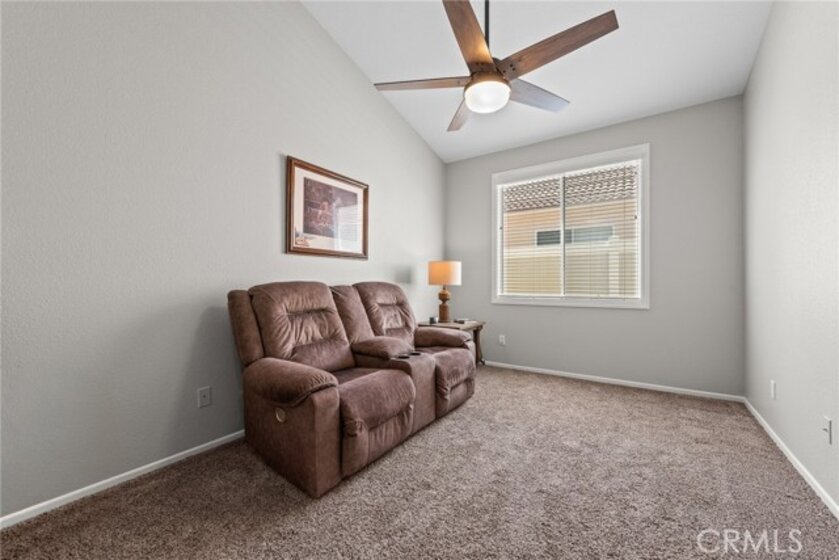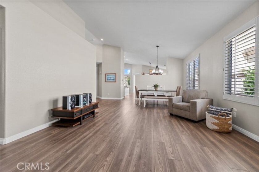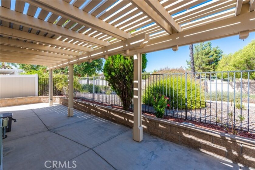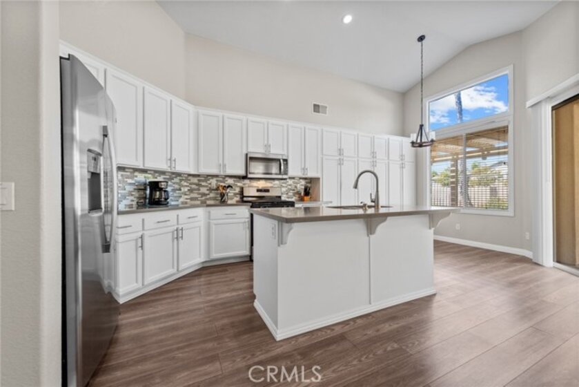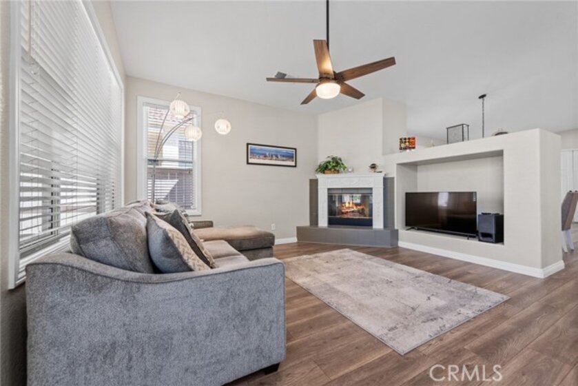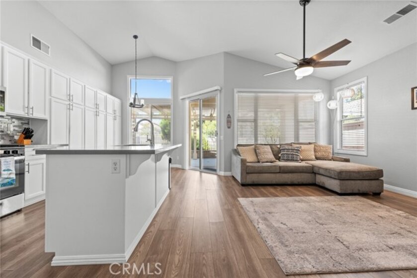 Welcome to this stunning single-story home, perfectly nestled in a beautiful, established neighborhood "The Colony" Boasting a fantastic blend of comfortable indoor living and sun-drenched outdoor enjoyment, this property is ideal for those seeking modern convenience in a serene setting. Step inside to an open floor plan where the main living areas flow seamlessly. The heart of the home is the updated kitchen, featuring, extensive white cabinetry for incredible storage, sleek stainless-steel appliances, quartz countertops, a modern backsplash, and a large center island with seating. Relax in the main living room beside a cozy fireplace, or unwind in the adjacent carpeted den, perfect for movie nights. High ceilings and ceiling fans enhance the bright, airy atmosphere throughout. The spacious Primary Suite is a true retreat, offering plush carpeting, an en-suite bath, and direct sliding door access to the private outdoor space. Outside, you'll find a large, shaded pergola-covered patio an ideal setting for al fresco dining, entertaining guests, or simply enjoying the California sunshine. Other features include new blinds in the bedrooms, updated bathrooms with new sinks, counter tops, and modern light fixtures shutters in living and family room, low maintenance landscape with newer sprinklers.