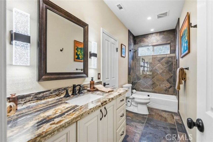 Experience peaceful La Cresta living in this beautifully maintained single-story Mediterranean home, perfectly positioned to take in sweeping mountain and city-light views. From the moment you walk in, the open floor plan, vaulted ceilings, wood beams, and natural light create a warm and inviting feel that’s ideal for both everyday living and entertaining. The great room features a cozy fireplace and flows effortlessly into the oversized gourmet kitchen, complete with granite countertops and plenty of space for gatherings. The primary suite is privately tucked away on its own wing of the home and offers incredible views along with a spacious, spa-like bathroom. The additional bedrooms sit on the opposite side, giving everyone their own comfortable space. Step outside to a true outdoor oasis. A luxury pool and spa overlook some of the most beautiful views in La Cresta—perfect for morning coffee, relaxing afternoons, or sunset evenings with friends. The yard also includes a sunken firepit, built-in BBQ, and an outdoor bathroom, making it a great setup for entertaining year-round. The 5.84-acre property is thoughtfully laid out with mature citrus trees—orange, lemon, and lime—along with a small avocado grove. There’s plenty of room for horses, a barn, workshop, guest house, or simply enjoying the open space and tranquility.