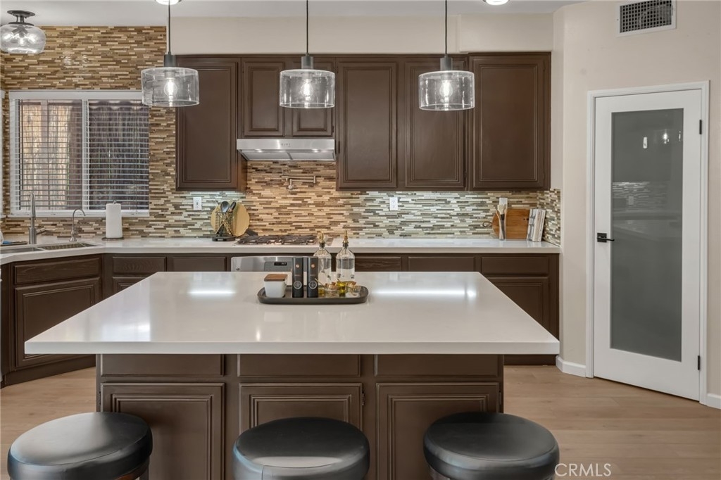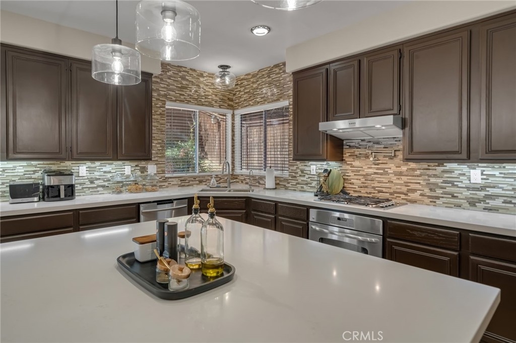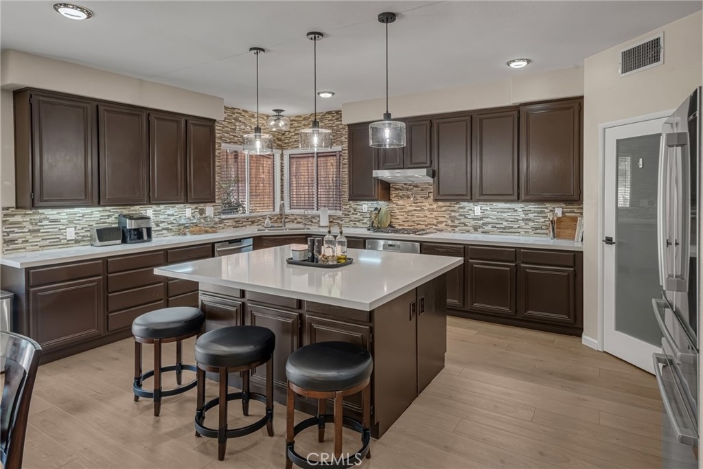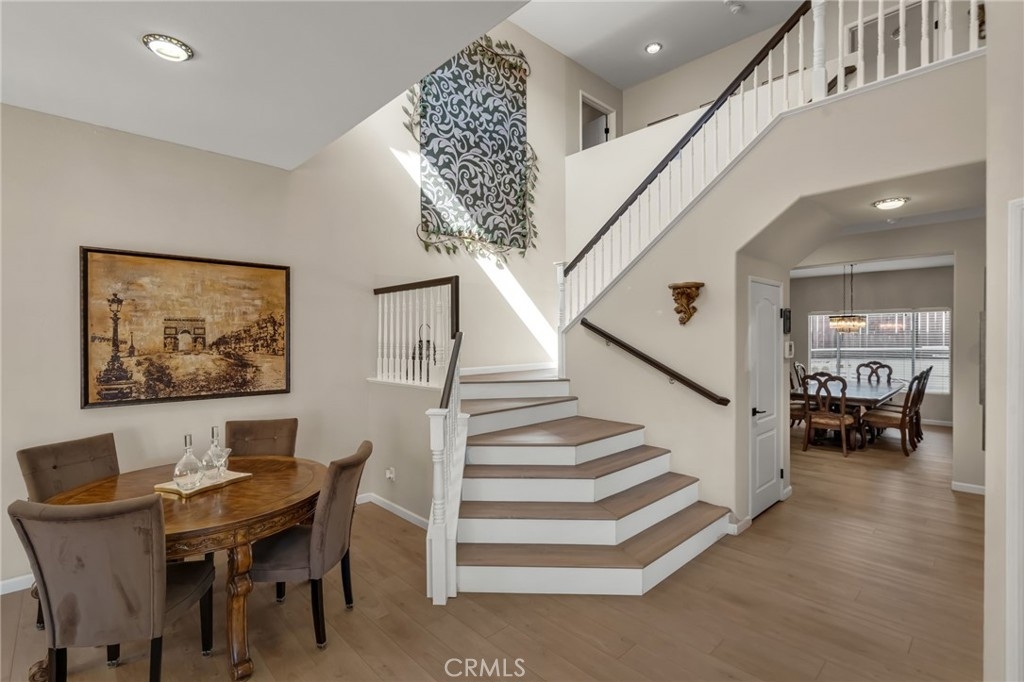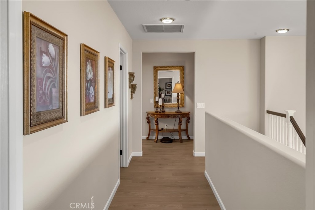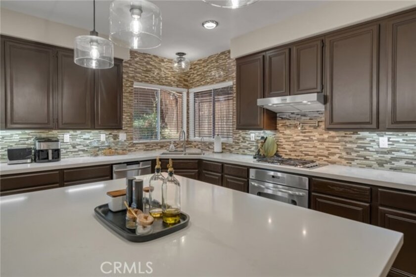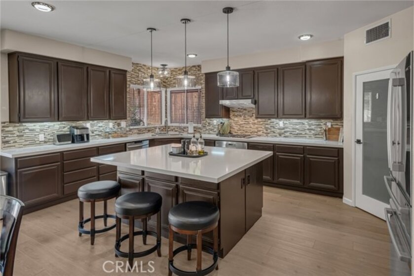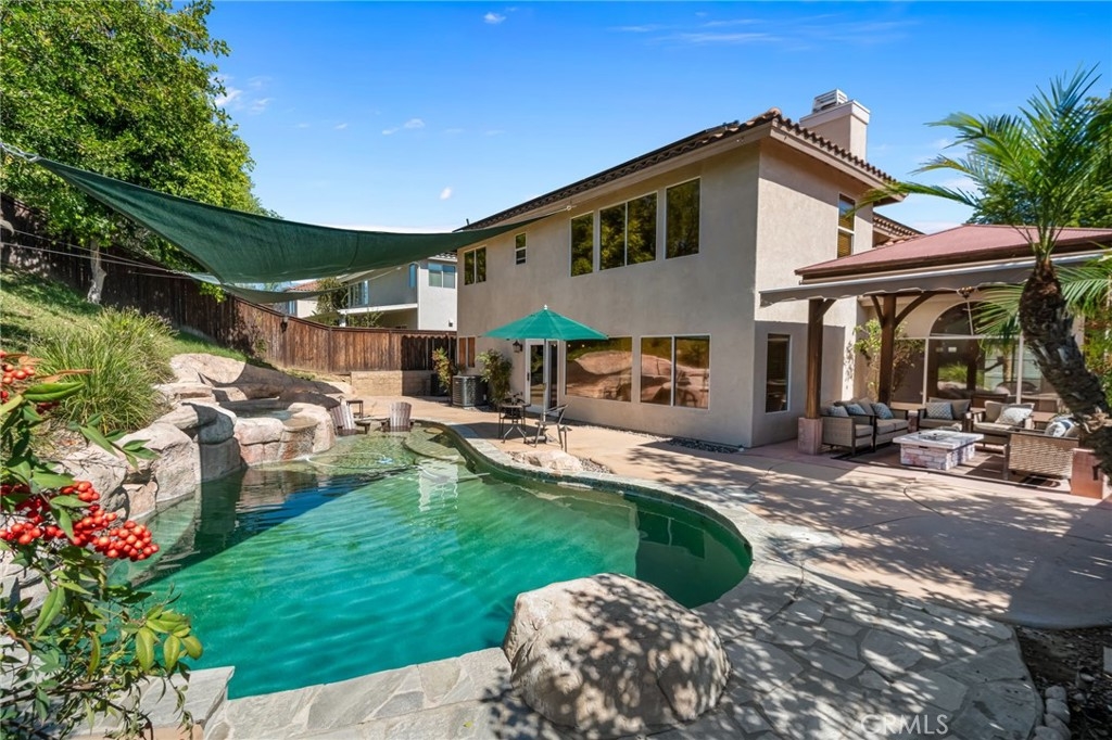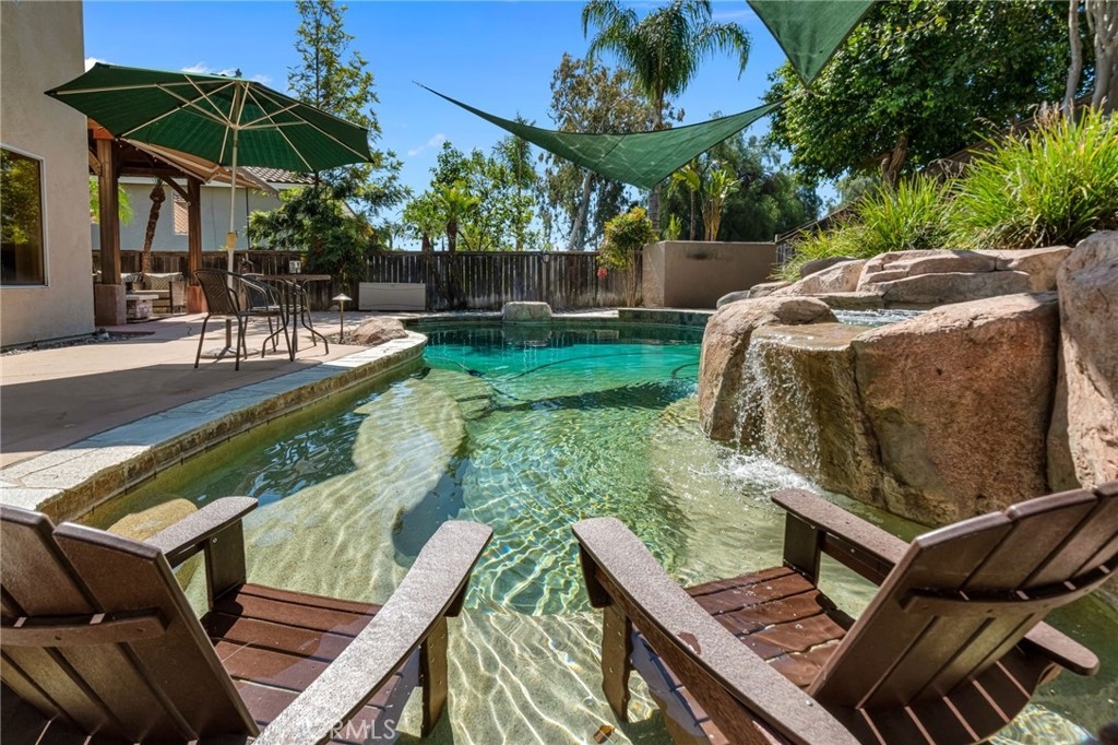 “LOCATION, LOCATION, LOCATION!” Move-in ready stunning Barratt Spacious Pool Home located in the prestigious neighborhood of Murrieta. This beautifully appointed 5-bedroom, 3-bathroom home offers generous living spaces, flexible floorplan options, and exceptional indoor-outdoor entertaining. A charming covered front porch invites you to relax and enjoy the peaceful neighborhood setting. Step through the double-door entry into an expansive front living area—perfect as a formal living room, game room, or entertainment space. The downstairs bedroom with double-door entry provides versatility as a guest room, multi-generational living, office, or home gym. A full bathroom and spacious laundry room with utility sink and ample storage complete the main level. The gourmet kitchen is truly the heart of the home, featuring a large center island, quartz countertops, stainless steel appliances, and abundant cabinetry. It flows seamlessly into the formal dining room and the inviting family room with a cozy gas fireplace and media niche—ideal for gatherings and everyday living. Step outside to your private backyard retreat. Enjoy the sparkling deep-water pool, fire pit area, pergola, and beautifully landscaped yard—perfect for entertaining or relaxing on warm Southern California evenings. RV parking along the side of the home complements the spacious 3-car garage. Upstairs, you will find four additional bedrooms, including two spacious “twin suite” style bedrooms, ideal for multi-generational living, study spaces, or creative flex use. An additional 3rd bedroom and full bathroom provide comfortable accommodations for family or guests. The bright and airy "Primary Suite" features a luxurious bath with soaking tub, separate shower, dual sinks, and a large walk-in closet with dual entries and built-ins. Additional highlights include neutral flooring throughout, newer baseboards, newer A/C, PAID-OFF SOLAR panels, and thoughtful upgrades. Located in a quiet, well-maintained Murrieta neighborhood close to schools, parks, commuter routes (I-15/I-215), and WITH-IN WALKING distance of local shops, a grocery store and restaurants, this exceptional home offers space, flexibility, and lifestyle. Over 3200 of living space, so many amenities to mention!! This beauty will not last!!