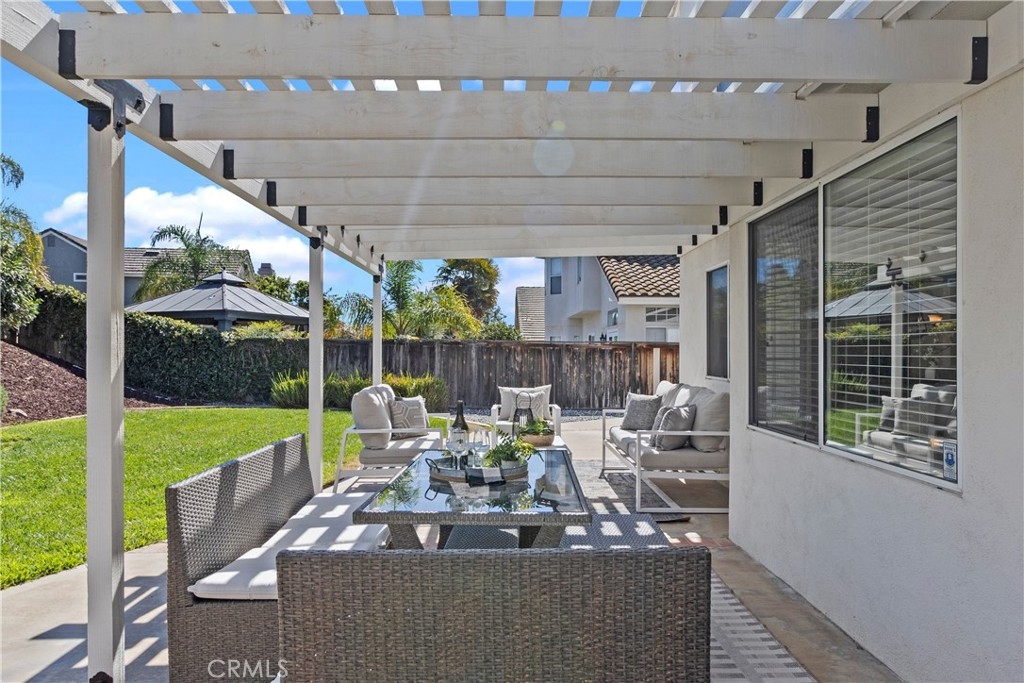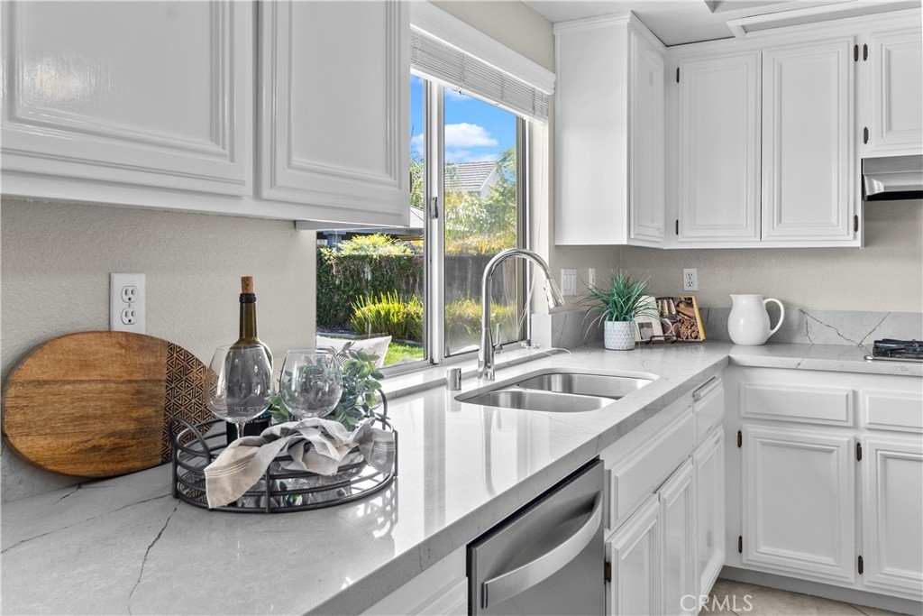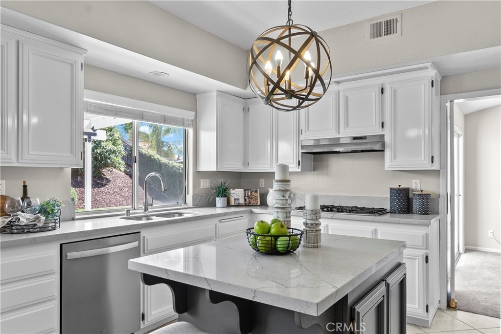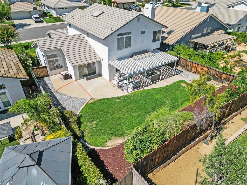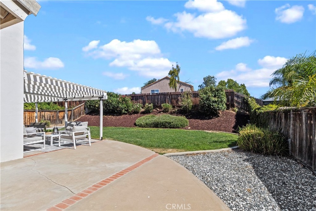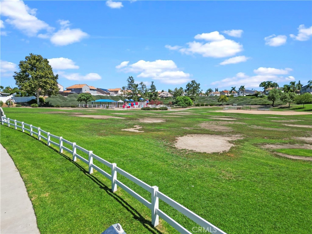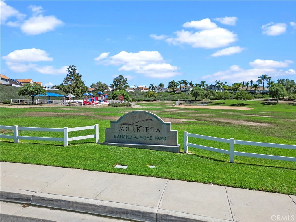 Picture yourself and your loved ones in this beautiful 2 story, 4 bed, 3 bath home with NO HOA and low taxes! This idyllic home is so charming!! Situated on a well established, adorable street, where families still come running outside when they hear the ice cream truck making its rounds. From the front of the property, your eyes are drawn to the classic brick on the exterior, 3 car garage, beautifully simple green grass and tidy landscaping. As you step inside, the soothing neutral paint color & high ceiling will catch your eye. The front living space on the right can be a place for family gatherings, quiet reading, used for home schooling or whatever your needs are. This home offers a separate dining room for your sit down family meals, or can also be another flex space. The dining area provides a large slider for a light-filled room with easy access to the backyard and is adjacent to the kitchen. A new refresh has been done in the kitchen located in the back of the home, w/ neutral paint colors on the cabinets, an island & brand new stunning quartz counters! For more informal meals or homework, the kitchen also offers an eat-in nook area. A microwave & wall oven is built in to the cabinets. Enjoy being in the kitchen & also being able to interact with your loved ones in the family room. You'll love the brick fireplace and the second slider in the family room, giving you lots of light & access to the back patio. For visitors, in-laws or an older child, around the corner from the family room is a 1st floor bedroom and closet with a main floor bathroom w/ a shower! In all the bathrooms, new lighting has been recently added. You will find an individual laundry room w/ upper cabinets for storage and a nice folding counter w/ quartz counter and storage below. As you walk upstairs, the large skylight offers abundant natural light. You'll find the master bathroom and closet are generously-sized! Cabinets for storage in the 2nd fl hallway. In the backyard, enjoy some outdoor time & cool nights under the newly constructed wood awning on the patio in the 6,000+ sf lot. ROOM FOR A POOL! Many parks nearby! Walk only 4 houses down to the closest park, less than 2 miles to the peaceful Pond Park, only 1 mile away is Los Alamos Hills Sports Park (47 acres). Murrieta schools, walking distance to Rail Ranch Elem, easy access to the 215/15 fwys, low property taxes, close to city amenities ...This beloved home is ready for the next owners to love & enjoy for years to come!