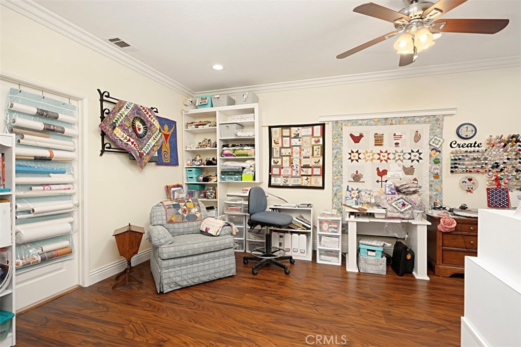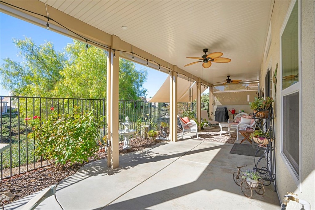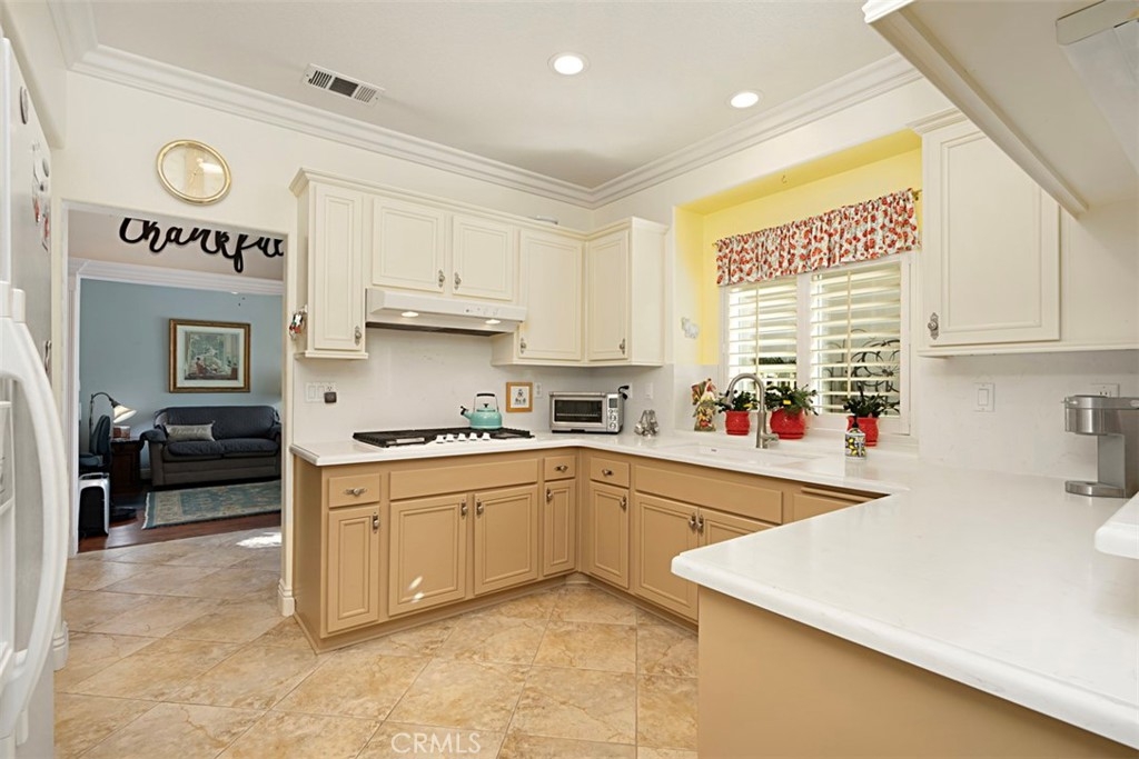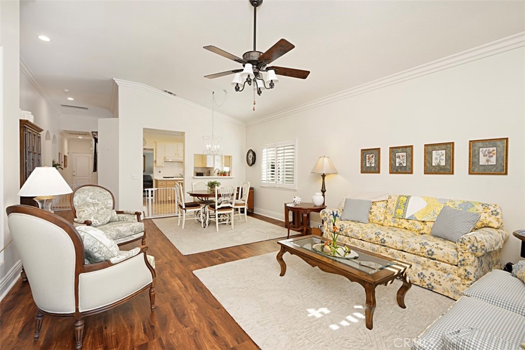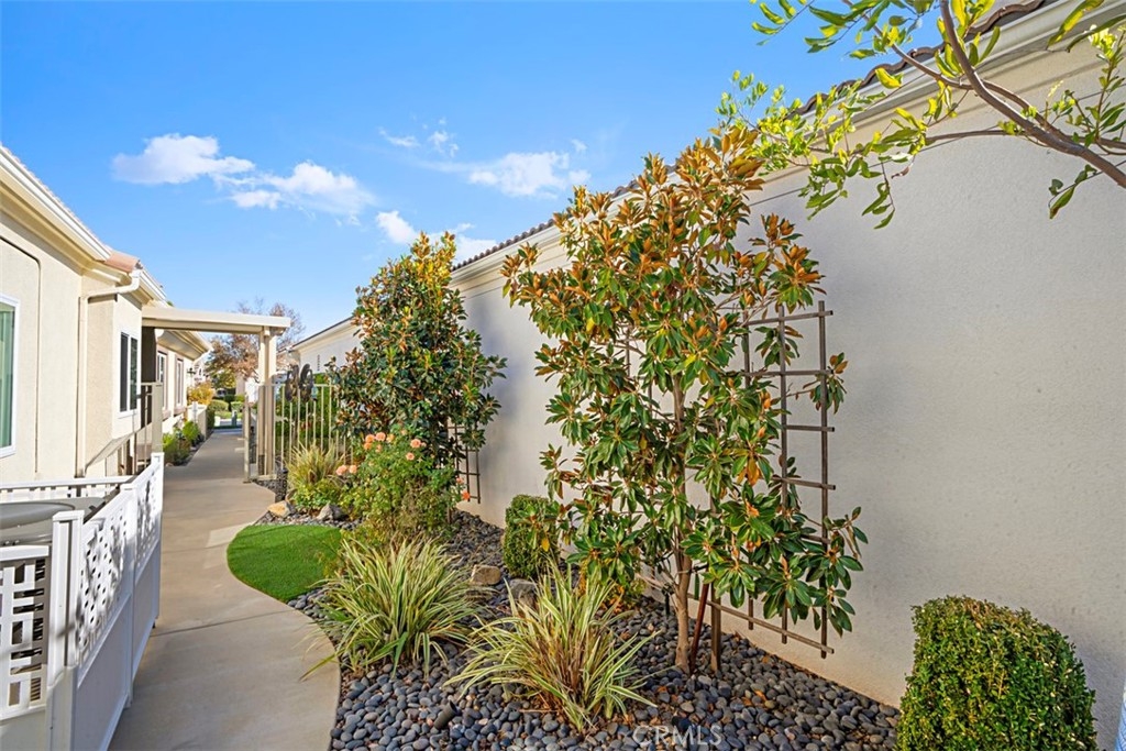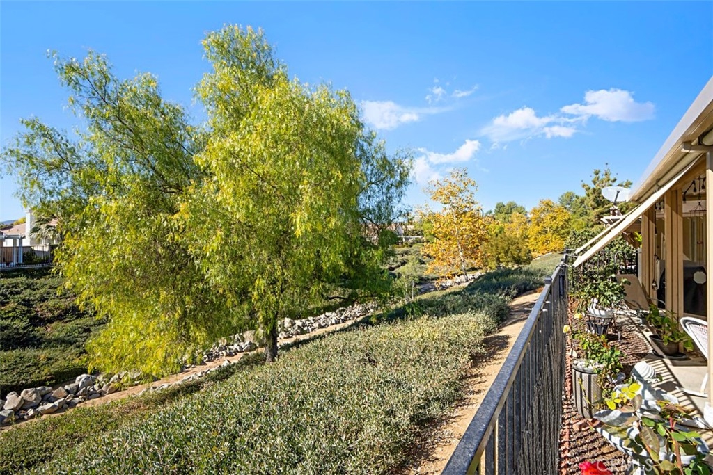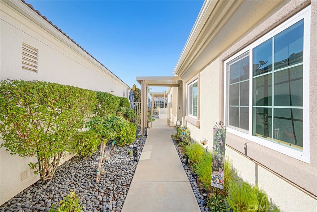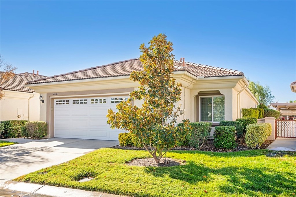 This home is truly a "GEM" set in The Colony, a 55+ guard gated community. Located on a quiet cul de sac & backing up to a picturesque nature corridor. No expense has been spared in upgrades! Enter the inviting leaded glass front door with matching transom above to newer LVP or tile floors through out the home. Notice all the crown molding, plantation shutters, custom window coverings, newer windows, quartz kitchen counters along with updated painted cabinets, ceiling fans, air conditioning/furnace & water heater have been replaced within 2-4 years, whole house fan, Solar tubes, lots of built in garage cabinets + workbench + new epoxy garage floor installed 10/24, vanishing screen door from garage into home, attractive and low maintenance alumawood patio cover with 2 ceiling fans & lighting with roll down sun shades, beautifully landscaped low maintenance wrap around patio perfect for entertaining or quiet reflection. Bright and airy with high ceilings, spacious great room features raised fireplace & opens to dining area, breakfast bar & kitchen. Primary suite has separate slider overlooking nature corridor views of lush trees & shrubs. Enjoy walk in closet, dual sinks, vanity area, oval tub, skylight, walk in shower with rain glass enclosure. Extra large secondary bedroom could be another primary bedroom with connecting bath. It is currently being enjoyed as a craft/quilting room. Let's not forget about ample laundry room complete with sink & built in cabinets. All this located in a scenic golf course oriented community with enormous clubhouse, scads of amenities & activities! HOA maintains & waters your front yard landscaping. Located near shopping, medical centers, Temecula wineries & Pechanga Casino.