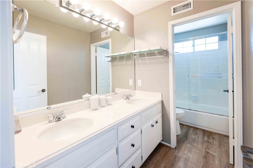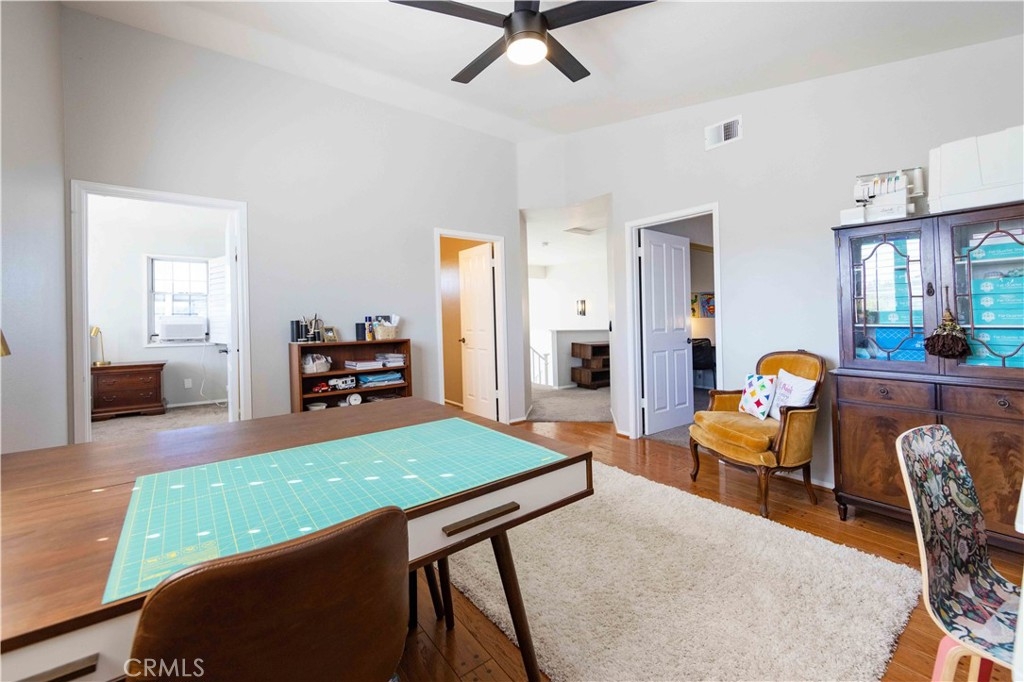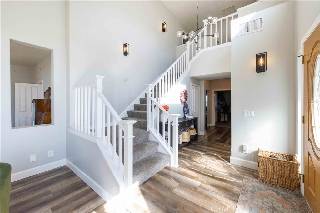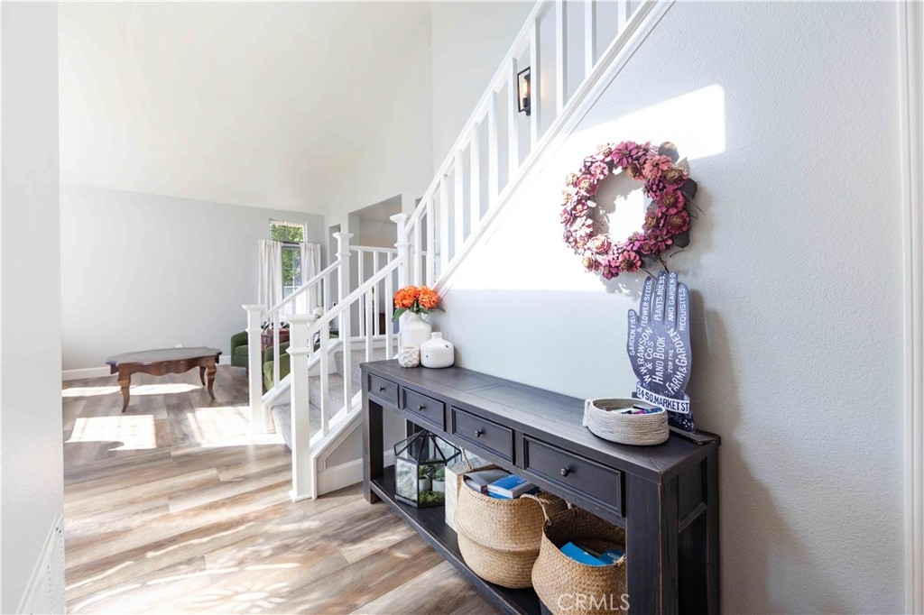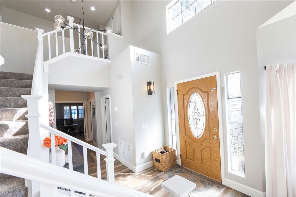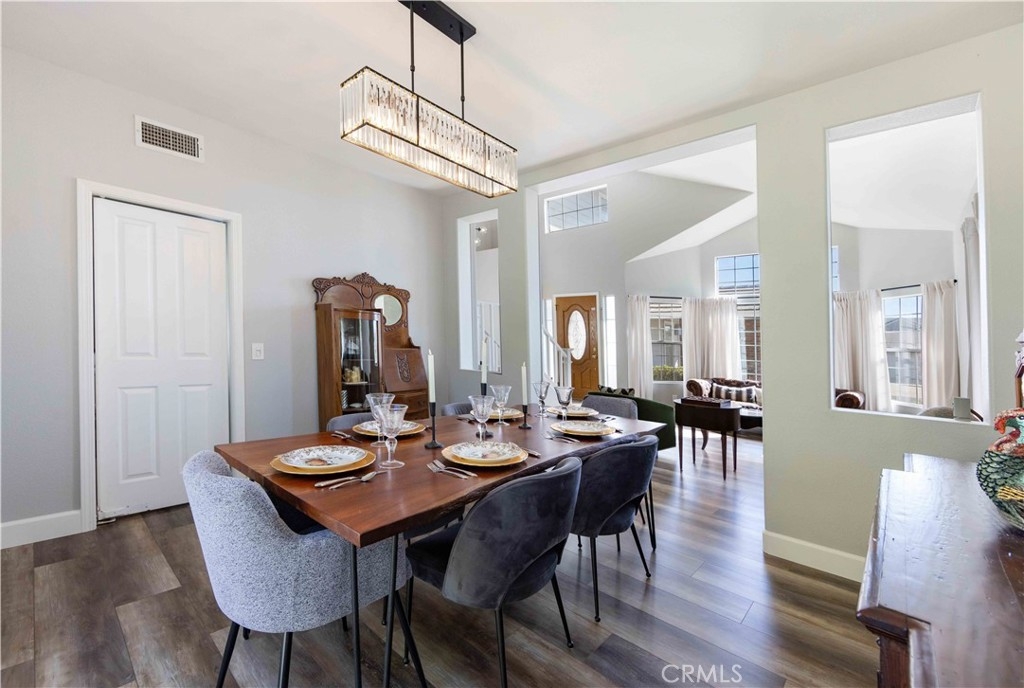 Everything about this home screams pride of ownership! This meticulously cared-for home offers a 3 car garage, 4 spacious bedrooms and 3 bathrooms, including a convenient bedroom and 3/4 bathroom on the ground floor. As you walk through the front door you’re greeted with tons of natural light and beautiful new LVP flooring. The main level has two separate living spaces, a large formal dining room, an oversized kitchen and dining nook as well as a bedroom and bath. Upstairs you will find the spacious en-suite, two more good sized bedrooms and a loft that could easily be converted to a 5th bedroom! Situated on a large corner lot, this home combines comfort, space, and style. This home is conveniently located near the 215 freeway, low taxes and NO HOA! Don’t miss out on your opportunity to own this beautiful home!
