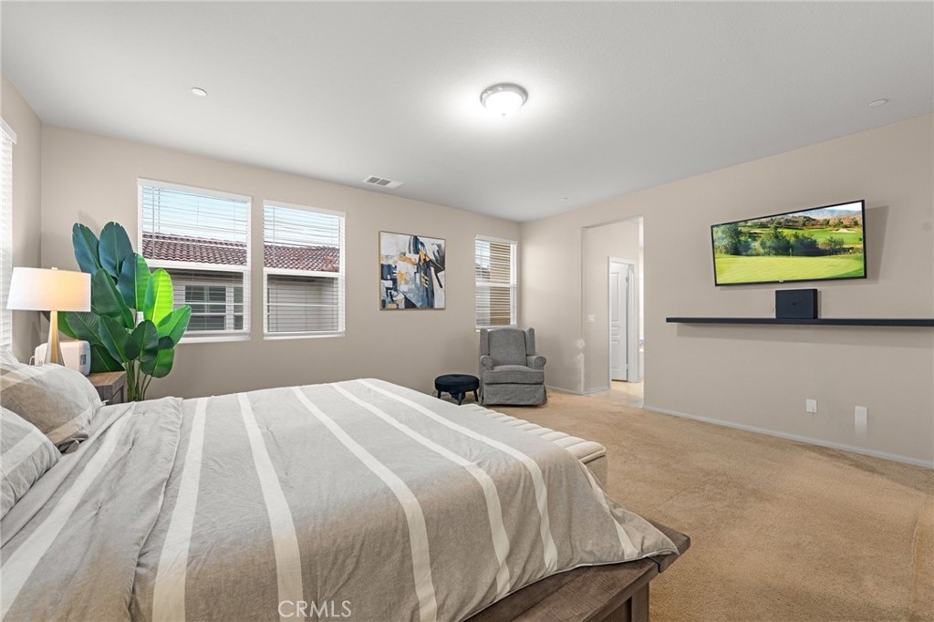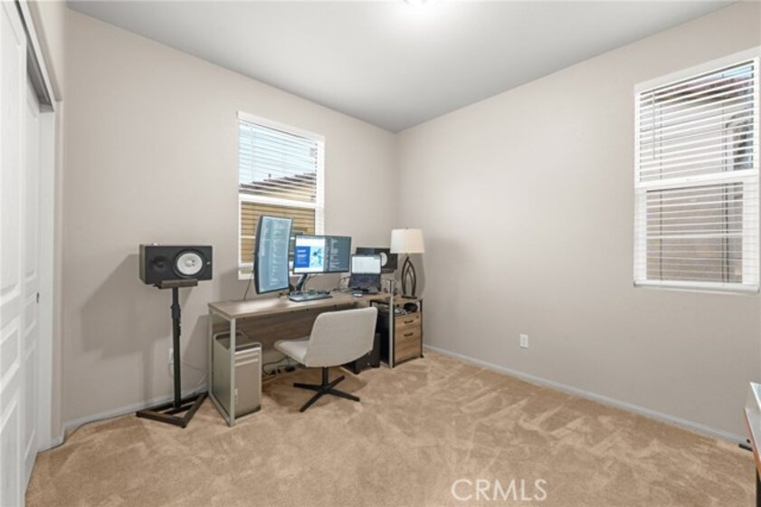 Welcome Home to 40146 Calle Real. Nestled in one of Murrieta’s most desirable communities, this beautifully upgraded, turnkey residence offers a lifestyle of ease, warmth, and refined living. Ideally located near parks, top-rated schools, shopping, and major commuter routes, this home puts you right where you want to be without sacrificing the peace and charm of a thoughtfully planned neighborhood. Step inside to 2,377 Sqft of inviting, well cared-for living space. Modern upgrades elevate both comfort and efficiency, including solar panels, an EV charger, whole-home water filtration and softening system, and reverse osmosis drinking water in the kitchen. At the heart of the home lies a chef-inspired kitchen that effortlessly elevates daily living. Its expansive island invites family gatherings and late-night conversations, while the granite countertops, stainless steel appliances, abundant cabinetry, and walk-in pantry create an ideal environment for those who love to cook or entertain. It opens seamlessly to the great room and dining area, creating a light-filled, true open-concept layout that you'll appreciate. Step through the sliding glass door to enjoy a serene, low-maintenance patio ideal for quiet mornings, alfresco dining, or unwinding after a long day. Upstairs, the primary suite offers a peaceful retreat with a soaking tub, walk-in shower, dual quartz vanities, and a generous walk-in closet. Two well-appointed additional bedrooms share a spacious bathroom with dual quartz sinks, and the versatile loft offers endless possibilities—second living room, home office, playroom, or the effortless conversion into a 4th bedroom. Neutral tones and a balanced blend of tile, laminate, and carpet create a warm, cohesive atmosphere throughout. In this vibrant, pride-of-ownership community, residents enjoy HOA-maintained front yards, parks, sports courts, walking trails, and year-round events sponsored by the HOA. And a rare opportunity for Veterans: this home includes an assumable VA loan at 2.875%, offering unmatched terms in today’s market. If you’ve been searching for a home that feels equal parts refined, welcoming, and practical, your next chapter begins here at 40146 Calle Real. Call us today for more info, or to schedule a private tour. Welcome home!