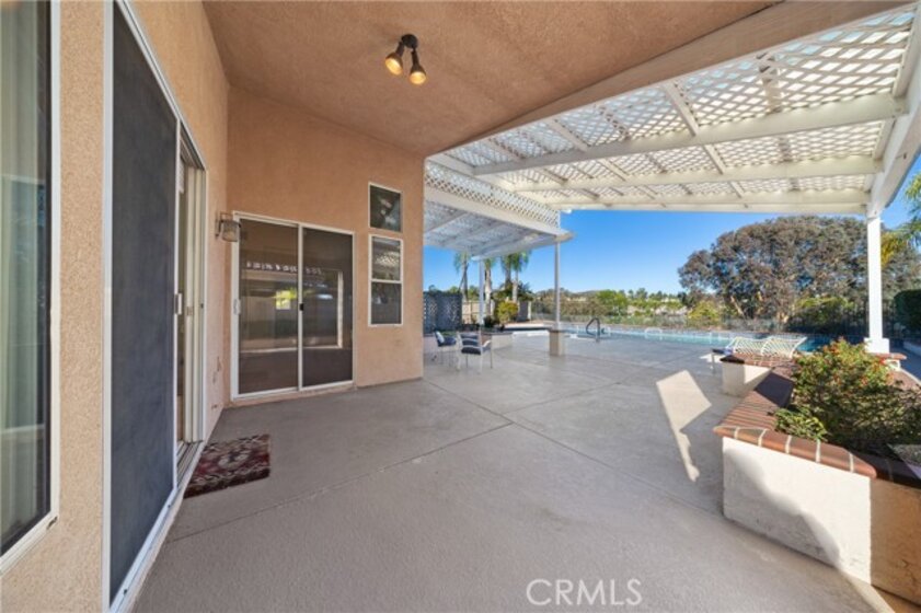 YOUR OWN PERSONAL RESORT with a large PRIVATE POOL, SPA & MAGNIFICENT VIEW OVER THE GOLF COURSE to the MOUNTAINS. This beautiful single-story home on a LARGE PREMIUM LOT is ideal for family gatherings with a SPACIOUS COVERED PATIO, ramped easy-entry pool + a spa with directional jets for relaxing. This lovely home sparkles with FRESH INTERIOR PAINT and laminate & tile flooring. The living area is light & airy with vaulted ceilings & lots of natural light. Kitchen has a double oven & stainless-steel cooktop, dishwasher & refrigerator and there is a casual dining nook. The primary retreat offers plenty of space for your bedroom plus a sitting area. Primary bath is UPGRADED with easy-care MARBLE COMPOSITE SHOWER, RIMLESS GLASS DOORS, soaking tub, dual sinks and a large walk-in closet with custom built-ins by Closet World. Bedroom 2 could be a SECOND PRIMARY BEDROOM boasting a walk-in closet with shelving & storage + an in-suite bath. Bedroom 3 is used as an office with a built-in desk, storage and file drawers by Closet World. There is a convenient half bath for guests and an indoor laundry room with a sink and storage. The exterior is so inviting with a private entry courtyard, concrete walkways on both sides & lots of brick-lined planters. You will love the energy efficiency of QUIET COOL FANS in 4 areas with individual controls to cool the home & the attic. Your garage has room for 2 cars + a golf cart or work area with built-in storage, finished floor and attic ladder. This spectacular home is centrally located on beautiful Colony Drive, nestled in The Colony, a vibrant 55+ GATED COMMUNITY. This stunning residence grants access to a RESORT STYLE CLUBHOUSE with an array of amenities for an unparalleled lifestyle. You will love the year-round community pool, 2 spas, lighted pickle ball/paddle tennis & tennis courts. You can enjoy the gym, library, ping pong, billiards, hair/nail salon. There are groups & activities for all interests with an auditorium for shows, dances, banquets, concerts, movies, bingo & parties for all occasions. A privately owned 18-hole golf course is inside the gate. The HOA waters & maintains all front landscaping. Guard gated entry and 24-hour security patrol give you peace of mind. In the safe city of Murrieta, you are close to stores, restaurants, medical, casinos and wineries. Enjoy the friendly neighbors and sense of community for TRUE RESORT STYLE SENIOR LIVING in The Colony.