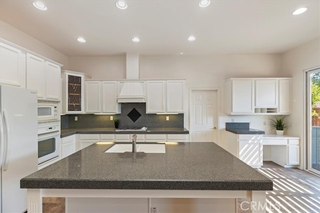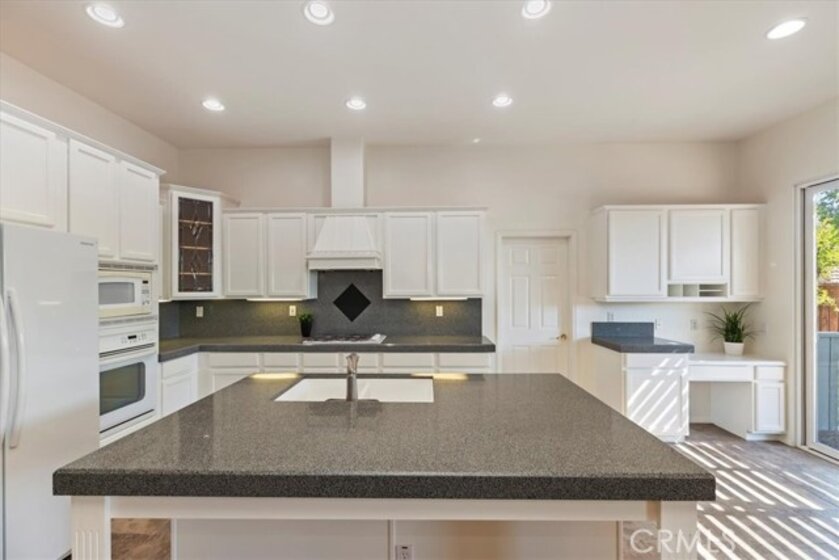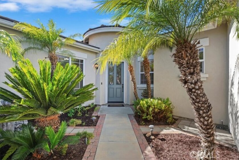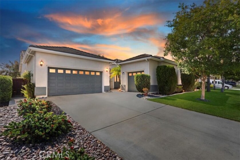 Welcome to this stunning single-story home in the highly desirable Clarendon Hills community—an exclusive neighborhood made up entirely of single-story residences, offering unmatched privacy and charm. Ideally located in the heart of Murrieta, this 2,701 sq. ft. home combines spacious design, thoughtful upgrades, and a rare dual-master layout. From the moment you arrive, you’ll be greeted by an inviting courtyard entry accented with brick paver trim. Inside, you’ll find brand-new interior paint just completed in a crisp, timeless white, creating a bright and welcoming atmosphere. The expansive kitchen features modern white cabinetry, a massive island, engineered quartz countertops, and a large walk-in pantry. A built-in desk area offers convenience, and the kitchen opens to the family room highlighted by a cozy fireplace. The laundry room includes a sink and cabinetry, and the washer and dryer are included. The primary suite boasts an upgraded bath with engineered quartz counters, shower and tub surround, and a massive walk-in closet. On the opposite side of the home, a second oversized bedroom with en-suite bath and direct access to the private single-car garage creates an ideal setup for multi-generational living, a guest suite, or a home office. Two additional bedrooms and another full bathroom provide flexibility for families of all sizes. Crown molding in a main living area and ceiling fans add comfort and style. Parking and storage are abundant with a two-car garage featuring built-in cabinets plus a separate single-car garage with its own entry. Step outside to the private backyard, designed for both relaxation and gatherings. Extensive hardscape with pebble stone flooring, seating walls with brick caps, and a covered patio set the stage for enjoying Southern California’s year-round sunshine. Landscaping includes vibrant rose bushes and fruit trees for added charm. Best of all, beautiful Vintage Reserve Park is just three houses down, making outdoor activities easily accessible. This home is also close to the Temecula Promenade Mall, dining, and entertainment, with Temecula’s award-winning wineries and Pechanga Resort & Casino only a short drive away. With a low tax rate, low HOA, and the rare appeal of being in an all single-story neighborhood, this Clarendon Hills home is a true find in Murrieta. Don’t miss the chance to make it your own!