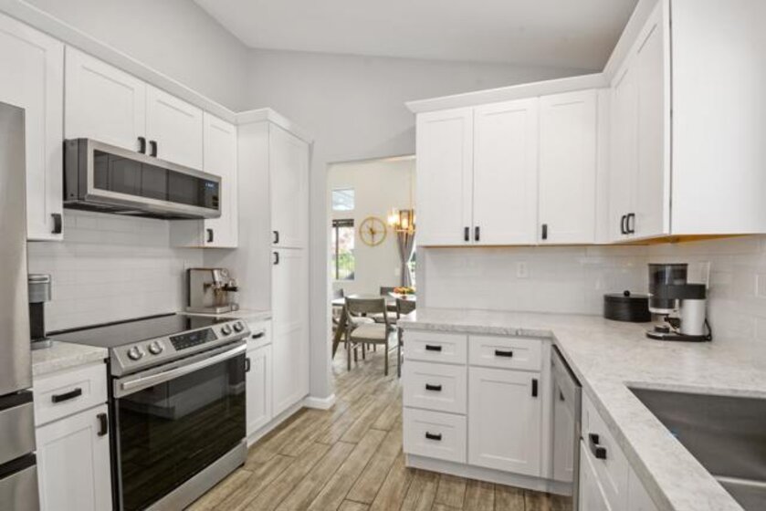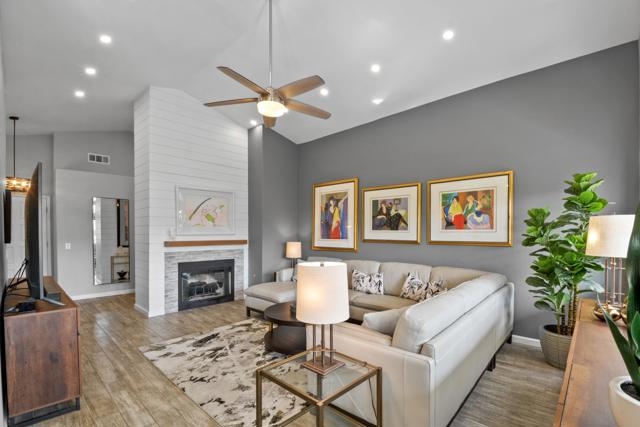 Designer Lives Here! It feels like a brand new home. Fully Upgraded 2 bedroom 2 bath Single-Story Greenbelt Home in The Colony - one of Southern California's most sought-after 55+ gated communities offering resort-style amenities and 24-hour guard-gated security. Stunning, meticulously remodeled home, where every square inch has been transformed with exquisite craftsmanship & attention to detail. Enjoy the convenience of nearby shopping and dining, including Historic Downtown Murrieta, as well as the renowned Temecula Wine Country...all just moments away. You enter the property through the beautiful landscaped gated walkway. Inside, you'll find tile wood-look flooring, vaulted ceilings, and an abundance of natural light in the expansive great room with an impressive fireplace featuring a custom shiplap surround. A large sliding glass door leads to your east-facing patio, perfect for morning coffee with tranquil greenbelt views, and afternoon shade for relaxing or entertaining. The Remodeled kitchen features crisp white cabinetry, added pantry & new Stainless appliances. Primary Suite Retreat - The spacious primary bedroom boasts a vaulted ceiling, ceiling fan & direct patio access. The Remodeled ensuite bathroom includes dual sinks, an oversized designer tiled walk-in shower, a walk-in closet & additional storage. ADDITIONAL HIGHLIGHTS: Recessed LED Lighting throughout. EV Charger installed in Garage. Guest bathroom is remodeled with stunning designer tile. Step outside onto your private patio and take in the views of the open space that lies just beyond your home. Relax under the Alumawood cover & delight in the presence of your very own peach, lemon, and orange trees. Say goodbye to the hassle of front yard maintenance, as the HOA takes care of it all, including watering the lawn. COMMUNITY: The state-of-the-art clubhouse offers a grand ballroom, fitness center, library, beauty salon & billiards room. The clubhouse serves as the vibrant heart of this community. Outdoor enthusiasts will find a wealth of recreational options at their fingertips. Swimming pool, engage in friendly matches on the pickleball, tennis, bocce ball & shuffleboard courts. And for golf enthusiasts, the neighboring Cal Oaks Golf Course winds its way through the community, providing magnificent views & endless enjoyment. The Colony homeowners voted to purchase the golf course & if the HOA wins the bid, there will be a ONE-TIME assessment of $1,995 per home.
