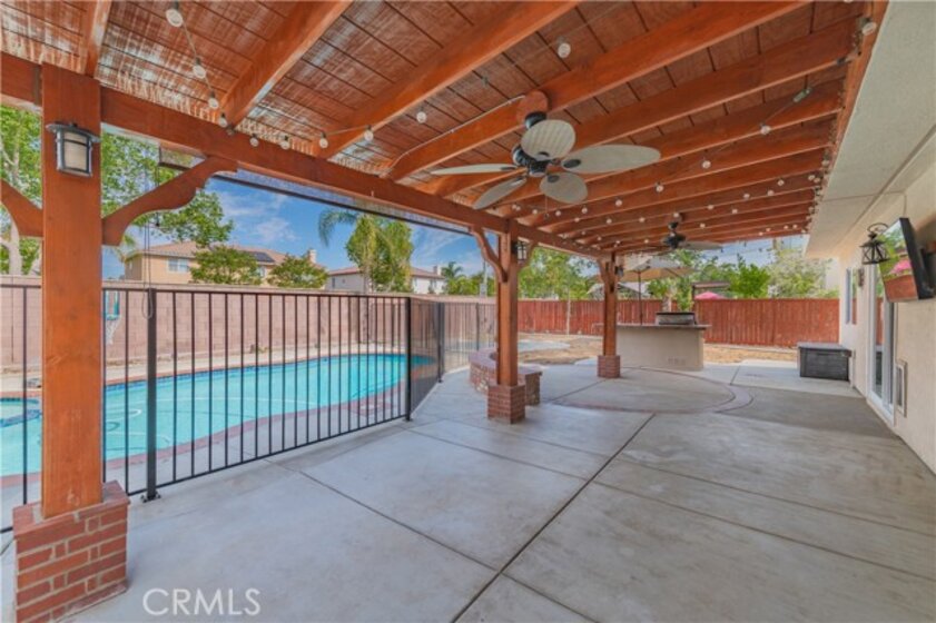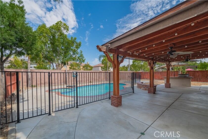 Exquisite Vintage Reserve Estate is Upgraded Four-Bedroom Residence with Bonus Suite in the Prestigious Murrieta School District. This distinguished four-bedroom residence, complete with a spacious bonus suite, is located within the highly esteemed Murrieta School District and offers an elevated standard of living ideal for families seeking space, elegance, and comfort. The interior has been extensively upgraded to reflect refined taste and quality craftsmanship. Throughout the home, premium hardwood flooring lends a timeless aesthetic while ensuring durability. At the heart of the residence lies a remodeled gourmet kitchen, meticulously designed for culinary excellence and appointed with countertops, custom-built cabinetry. The expansive master suite serves as a private retreat, featuring a redesigned walk-in closet and a luxuriously appointed en-suite bathroom, offering a serene and sophisticated environment. Occupying a premium lot, the property showcases sweeping city views and includes a beautifully maintained swimming pool, outdoor BBQ island and sitting area - Perfect for both entertaining guests and private relaxation. Additional enhancements include FULLY PAID OFF Solar Panels, New flooring & baseboards, New pool vacuum, New appliances, New irrigation system, total upgrades over $78k. Ideally positioned, the home is walking distance of Buchanan Elementary School and a brief 5-7 minute driving to Freeways. Its prime location also provides convenient access to the local library, major shopping centers, and key transportation corridors. Blending timeless architectural design with modern upgrades and an enviable location, this exceptional residence represents a rare opportunity to own a truly remarkable home in the prestigious community of Murrieta with no HOA. All information provided is deemed reliable but not guaranteed. Buyers and their agents are strongly encouraged to independently verify all facts and details to their satisfaction.