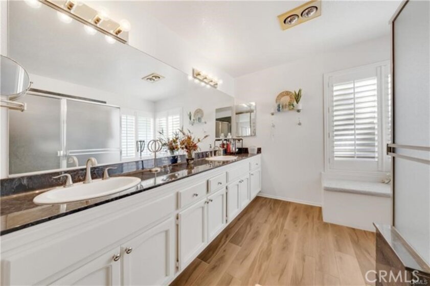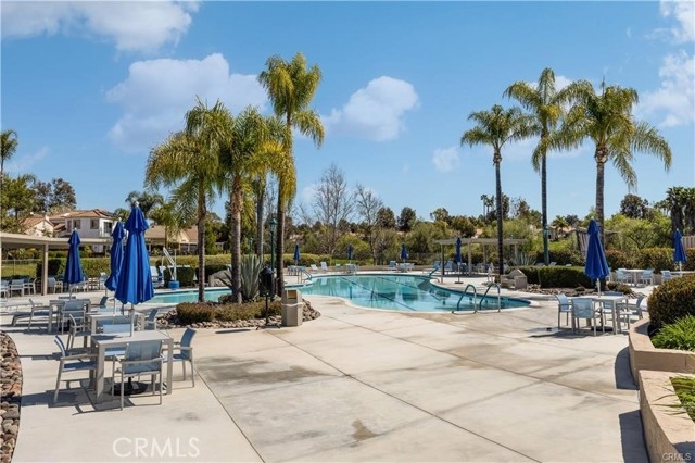Experience resort style living in The Colony, a premier 55+ community. This rare two bedroom plus office floor plan offers privacy with no neighbors behind you. A gated entrance welcomes you into a peaceful courtyard that wraps around to a serene backyard patio with low maintenance landscaping, an alumawood patio cover with dimmable LED lights, and an outdoor ceiling fan. Inside, the open layout is filled with natural light from skylights and solar tubes, featuring vaulted ceilings, recessed lighting, ceiling fans, and wood floors in the living and dining areas. A warm fireplace and built-in cabinets create an inviting atmosphere. The updated kitchen features wood grain tile flooring, modern appliances, and plantation shutters. The breakfast nook includes a built-in dining booth with storage. The remodeled hall bath showcases porcelain tile floors, a soaker tub and shower combo, a new vanity, upgraded fixtures, and a solar tube for added light. The master suite offers a relaxing retreat with wood floors, vaulted ceilings, a ceiling fan, plantation shutters, a walk-in closet, and an upgraded bath with granite countertops, porcelain tile floors, a walk-in shower, and a window seat with storage. The second bedroom includes LVP flooring, plantation shutters, a remote LED ceiling fan, and a walk-in closet. An additional office space features wood flooring, built-ins, a vaulted ceiling with skylight, and direct patio access through a retractable screen door. The garage includes built-in storage, LED lighting, and a pull-down attic door for extra space. Energy efficient upgrades include solar panels, dual pane windows, and a whole house fan for lower energy costs. The Colony is a guard gated community offering top amenities including pools, tennis, golf, social clubs, and organized activities. Seller offering a 1% interest rate buydown for the buyer, subject to cross qualification with the seller’s agent and lender approval. Great opportunity to reduce your monthly payment.