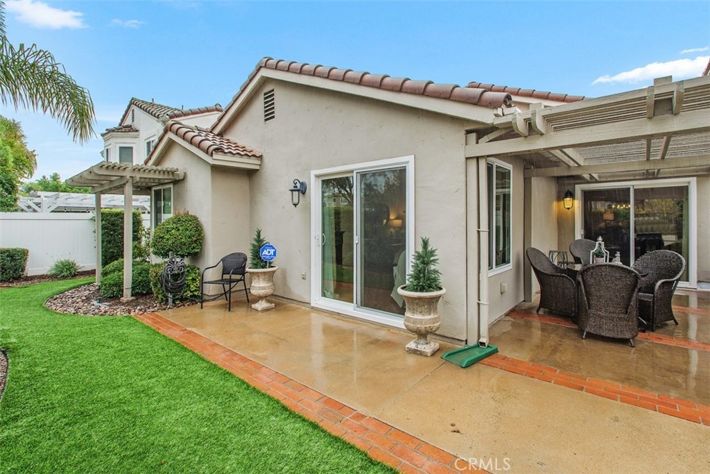 BACK ON THE MARKET at no fault of the seller. Just in time for the New Year, this beautiful, move-in-ready home. Located in the desirable 55+ Colony community! Featuring upgraded double entry doors, new appliances, windows, and plumbing, this home is designed for modern living. The open kitchen offers extended counters, a walk-in pantry, quartz surfaces, under cabinet and pendant lighting, while the family room boasts a cozy gas fireplace and recessed lighting. The spacious primary suite includes a walk-in closet, a slider to the patio, and a luxurious bath with double sinks, granite counters, and a walk-in shower with custom tile, granite and a seat. Additional highlights include new skylights, updated fixtures, ceiling fans, nice interior/exterior paint, and newer HVAC and water heater. Enjoy a finished garage with epoxy flooring, built-in cabinetry, golf cart space, and pull-down attic storage. Outdoor living shines with custom brickwork, turf with drainage, three newly rebuilt patio covers, landscaped yard and courtyard, a peach tree, and vinyl fencing with a wrought iron extender. The Colony is the only gated 55 + community in Murrieta. This gated community also has a 24-hour security guard, a clubhouse with many activities, a fitness center, a meeting room, a library, a pool, a spa, pickleball, tennis, bocce ball, and more. The community also maintains the front yards. There is a public golf course for your convenience. Easy access to shopping, medical centers, hospitals, parks, and freeways. This home is a wonderful blend of comfort, convenience, and style — ready for you to move in and enjoy!