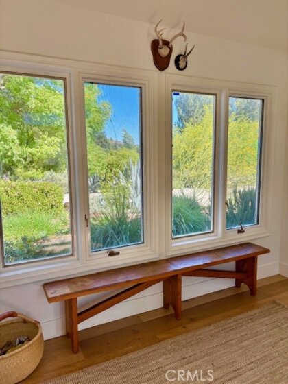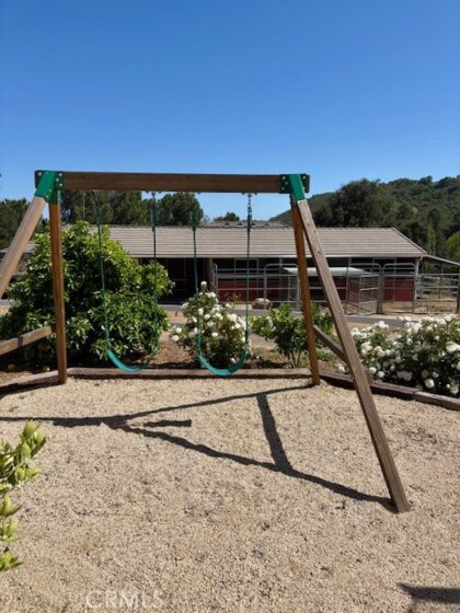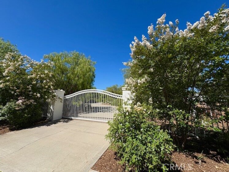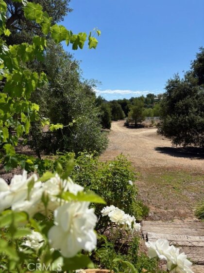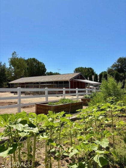 Tucked into the rolling hills of La Cresta, where golden sunsets meet open skies and ancient Engelmann oaks shade the land, lies a rare and beautiful ranchette — a retreat for those who crave space, purpose, and timeless farmhouse charm. Set on flat, usable land in the heart of the Santa Rosa Plateau, this private estate invites you to grow your roots and live in harmony with nature, without sacrificing proximity to the modern world. Behind the gates, you'll find fenced pastures, organic orchards, curated landscaping, and a charming 3-stall barn with turnouts, all designed for peaceful country living. A 100' round pen and direct trail access complete this ideal equestrian setup. The bright, farmhouse-inspired main home is filled with natural light. Large glass doors in the formal sitting room open to the backyard. A quiet office sits just off the entry, and a guest bath and two bedrooms, including a spacious main-level primary suite with fireplace and backyard access. The home lives like a single story, offering ease and comfort. The family room with fireplace flows into a crisp kitchen with center island, dining nook, and a formal dining room, perfect for gatherings and breaking bread with friends. Upstairs, you will find two large bedrooms, a shared bathroom with a walk-in shower and window overlooking the front yard, a workout space, a private sauna, and attic access with potential for expansion or storage. More than just a home, this property offers a complete lifestyle. Adjacent to the main house is a versatile structure with an oversized RV garage, a ground-level guest suite, and studio apartment above, ideal for multi-generaltion living, extended family, staff, or rental income. The guest suite opens to a patio with two cowboy tubs for soaking under the stars. Every inch of this land is usable and purposeful, ideal for homesteading, growing food, or simply enjoying the pace of rural life. With a private well, paid-off solar system, and high-speed fiber internet, you will enjoy sustainable, connected living with minimal utility costs. Though it feels a world away, you're just minutes from the 15 freeway, Temecula, and Murrieta, under an hour from San Diego or Orange County. This is more than a property. It is a sanctuary, a working estate, and a place to build your legacy. Come experience the magic of La Cresta and let this extraordinary ranchette welcome you forever home.