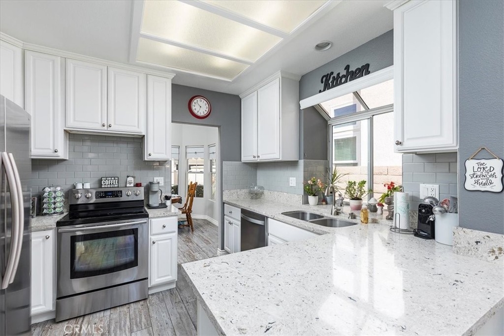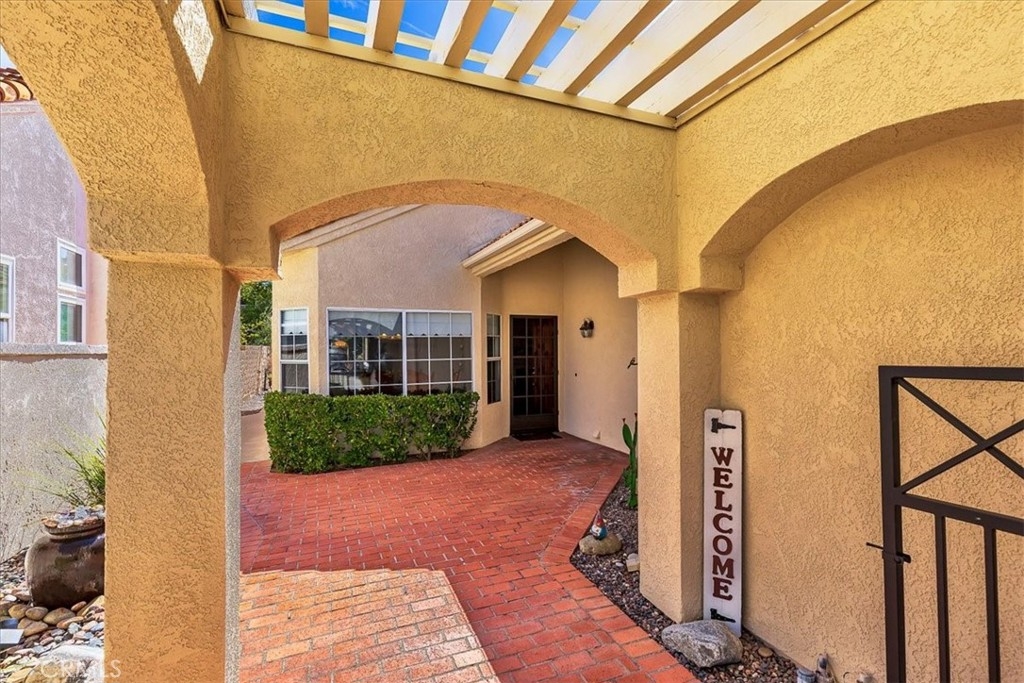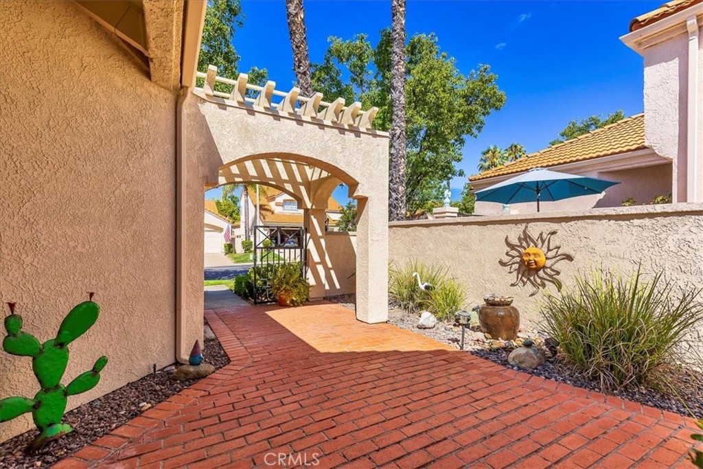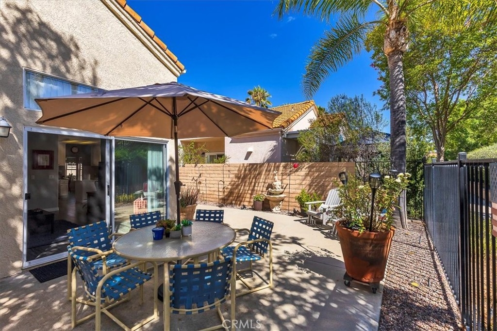 BACK ON THE MARKET, Move-in ready and beautifully maintained, this charming home boasts a bright interior with vaulted ceilings! Located in the highly desirable 55+ gated community of The Colony, this truly TURN-KEY, single-story offers residence a rare opportunity to experience upscale, active, adult living in one of America’s safest cities. Thoughtfully designed for comfort and entertainment, the home features 2 bedrooms, 2 updated bathrooms, a spacious living room, with a bright and airy atmosphere throughout. Upon entry, you’ll be greeted by a large and inviting gated courtyard leading to the front door. The cozy living area features a fireplace, creating a perfect spot for relaxation. The updated kitchen is equipped with modern appliances, new cabinetry, sleek counter-tops and a convenient breakfast nook. Wood tile flooring throughout adds both style and durability. The primary suite offers a private retreat with new windows and carpet. The updated en-suite bathroom is complete with a shower and dual sinks. The additional bedroom is generously sized and share a well-appointed updated second bathroom. The home features a two-car attached garage and a private backyard space with new iron fencing and gate leading to a walking path. Residents of The Colony enjoy access to pickleball, tennis, bocce ball, a sparkling pool and spa, and a scenic golf course that winds through the community. Don’t miss this opportunity to live in one of the area’s most desirable 55+ neighborhoods!