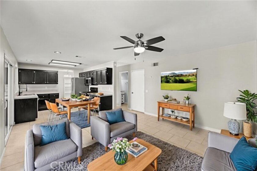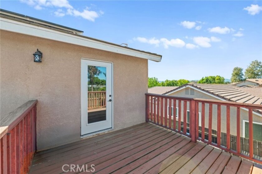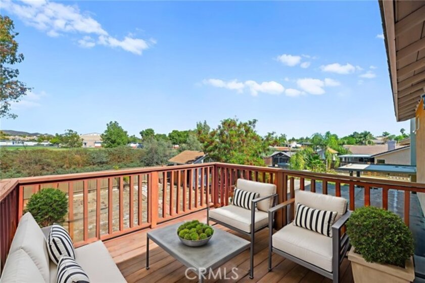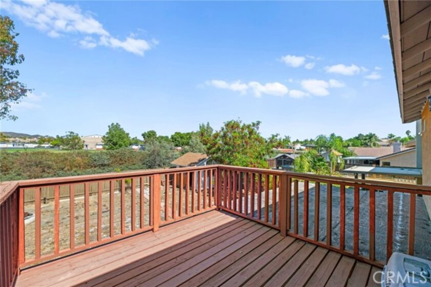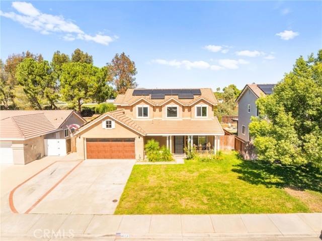 Beautifully upgraded 3-bedroom, 2.5-bathroom home located in the desirable California Oaks community of Murrieta. This two-story residence features approximately 1,509 sq ft of living space on a spacious 6,970 sq ft lot. Interior upgrades include new vinyl plank flooring throughout, updated lighting and plumbing fixtures, and freshly painted interiors. The remodeled kitchen is equipped with stainless steel appliances, a 6-burner gas range, reverse osmosis water filtration system, and a newer refrigerator that conveys. Upstairs you'll find all three bedrooms, including the primary suite with dual sinks, a walk-in closet, and a private balcony overlooking the backyard. The large backyard is fully fenced and includes a covered patio, storage shed, and ample space for a future pool or ADU. The home also features a newer garage door, central HVAC, and double-pane windows plus a Tesla EV charging system. Washer, dryer, and refrigerator are included. Buyer to assume solar lease. No HOA, No Mello-Roos, and low property taxes. Conveniently located near top-rated schools, shopping, dining, and freeway access.