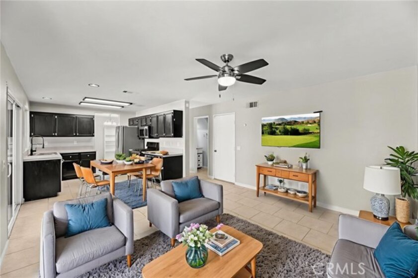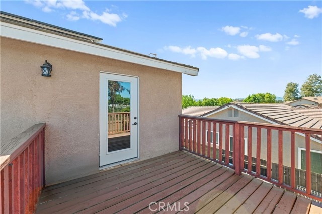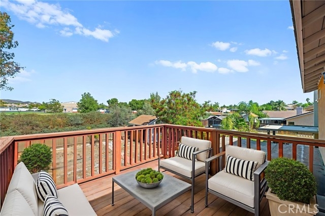 Beautifully upgraded 3-bedroom, 2.5-bathroom home located in the desirable California Oaks community of Murrieta. This two-story residence features approximately 1,509 sq ft of living space on a spacious 6,970 sq ft lot. Interior upgrades include new vinyl plank flooring throughout, updated lighting and plumbing fixtures, and freshly painted interiors. The remodeled kitchen is equipped with stainless steel appliances, a 6-burner gas range, reverse osmosis water filtration system, and a newer refrigerator that conveys. Upstairs you'll find all three bedrooms, including the primary suite with dual sinks, a walk-in closet, and a private balcony overlooking the backyard. The large backyard is fully fenced and includes a covered patio, storage shed, and ample space for a future pool or ADU. The home also features a newer garage door, central HVAC, and double-pane windows plus a Tesla EV charging system. Washer, dryer, and refrigerator are included. Buyer to assume solar lease. No HOA, No Mello-Roos, and low property taxes. Conveniently located near top-rated schools, shopping, dining, and freeway access.