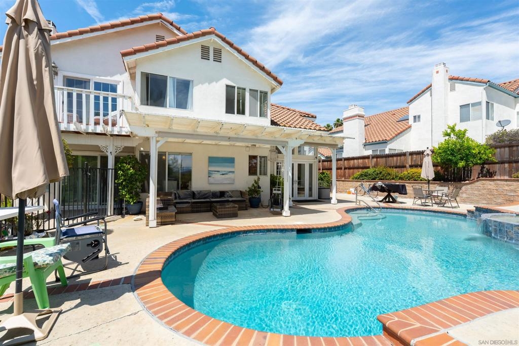 Welcome to your private retreat in the heart of Murrieta, where comfort and style come together in this stunning pool home. This 4 bedroom, 3 bathroom home features a full bedroom and bath downstairs along with a spacious 3 car garage. As you enter, you are greeted by soaring ceilings, beautiful bamboo flooring, and an abundance of natural light. The living and dining areas showcase large picture windows, custom built-ins, and a cozy fireplace that creates a warm and inviting atmosphere. The kitchen offers generous counter space, a center island, and opens seamlessly to the oversized family room with a second fireplace, making it perfect for both entertaining and everyday living. The downstairs bedroom and full bath provide flexibility for guests, multigenerational living, or a home office. Upstairs, the primary suite is positioned at the back of the home to take advantage of privacy and mountain views. Enjoy your own private balcony along with a spacious en suite bathroom featuring dual sinks, a soaking tub, and a glass enclosed shower. Two additional bedrooms and a shared bathroom complete the upper level. Step outside to your backyard oasis with a sparkling pool and spa, ideal for relaxing or entertaining. The scenic views create a peaceful backdrop that makes this home truly special. Located near award winning Murrieta schools, shopping, dining, and just minutes from Temecula wine country with easy access to the 15 and 215 freeways. All measurements are approximate. Buyer's and Buyer's Broker/Agent should verify measurements and complete thorough inspections and investigations prior to Close of Escrow to satisfy themselves with the current condition of the property. Buyer(s) to verify and approve all data, reports, records, inspections, permits, MLS, HOA, if applicable and all information pertaining to the property prior to removal of contingencies. All contracts/offers are subject to seller approval and any offers or counteroffers by seller are not binding unless the entire agreement is ratified by all parties.