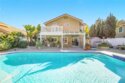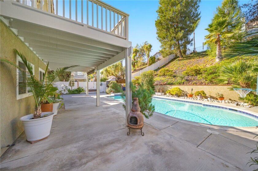 Set in a peaceful Murrieta cul de sac, this spacious property offers room to live, relax, and enjoy both indoor and outdoor living. The oversized 10,109 square foot lot sits across from open land, giving the home a sense of space and privacy that is hard to find. With four bedrooms, two and a half bathrooms, and a three car garage, there is plenty of flexibility for daily life, hobbies, and storage. The garage includes a workshop area, attic storage, and a washer and dryer that stay with the home. The interior features a comfortable and open layout with high ceilings in the main living area that bring in natural light and create an easy flow. Luxury plank vinyl flooring runs through much of the home and pairs well with the neutral color palette. The family room centers around a stacked stone fireplace and opens to the kitchen, making it ideal for everyday living or hosting friends. The kitchen offers generous counter space, ample cabinetry, stainless steel LG appliances and a clear view of the backyard. Updated windows and plumbing throughout the home add efficiency and peace of mind. Upstairs, one of the secondary bedrooms opens to a private balcony through French doors, offering a quiet place to work, unwind, or enjoy fresh air. The primary bedroom is generously sized with a walk in closet and an updated shower. A remodeled secondary bathroom continues the clean and modern feel. Outside, the backyard feels like a private retreat. A custom pool and spa are surrounded by mature landscaping, colorful plantings, and extensive hardscape designed for low maintenance and relaxation. A built in firepit creates a welcoming space for evening gatherings. Additional improvements include newer fencing, rain gutters, a newer pool heater, and Pentair pool equipment. The wide side yard provides room for extra vehicles, a boat, or potential small RV parking, while raised planter beds invite you to grow your own vegetables. A large outdoor shed is included for added storage or projects. Located close to shopping, dining, parks, and well regarded Murrieta schools, with convenient access to both the 15 and 215 freeways, this home offers a balance of comfort, location, and value. Warm, inviting, and thoughtfully maintained, it is a place that truly feels like home the moment you arrive.