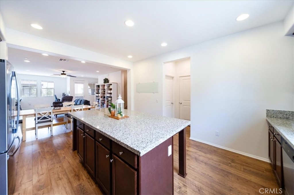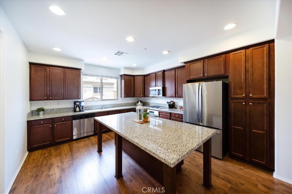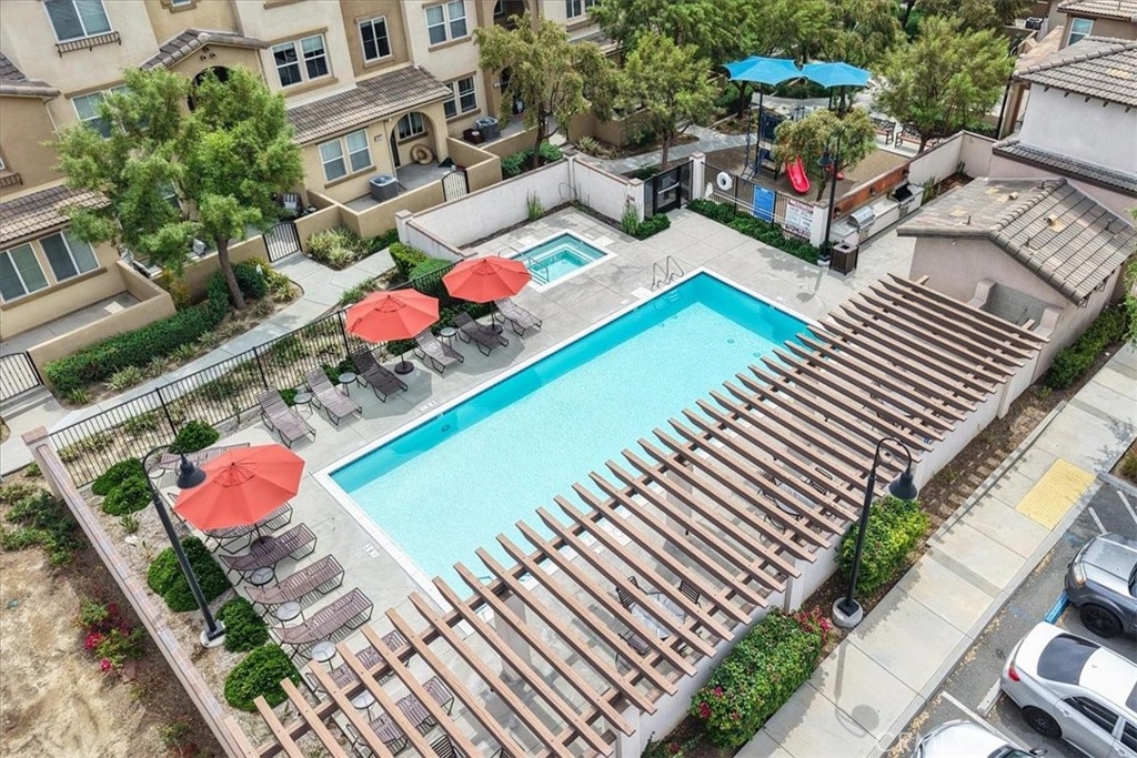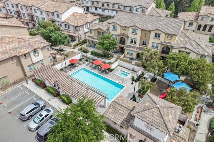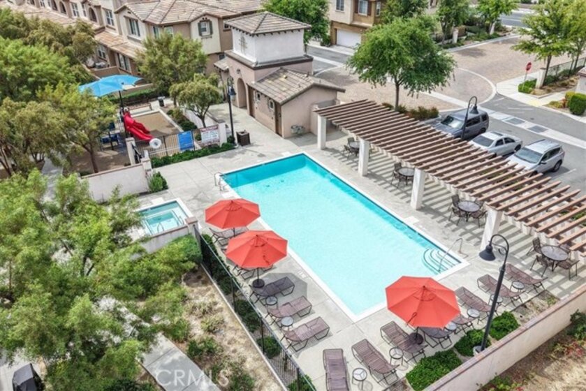Turnkey tri-level townhome in Murrieta at The Ridge of Cal Oaks. This home offers 4 bedrooms, 3.5ba and a large 2 car garage. You are welcomed by a east facing large patio. Open the door to a wide foyer, a bedroom with a full en suite bath. Access to the garage and find a large 2 car garage with a extra tandem spot for storage or toys. Go upstairs to a light, bright, open great room and huge kitchen equipped with an large island and tons of counter space. Right off the kitchen is a full size laundry room, half bath and utility closet. The great room offers plenty of space for the whole family. There’s even a nook a WFH or gamer. On up to the 3rd floor, you’ll find the master with en suite that include large dual sink, separate shower and tub and walk in closet. 2 additional guest bedrooms and guest bath. All rooms have wonderful natural light. The 2 guest beds are west facing with Mountain views in the distance Tucked away on a private and quiet street yet close to shopping and the freeway. The community is wonderfully cared for with beautiful landscaping, new exterior paint and welcoming pool just in time for Summer.