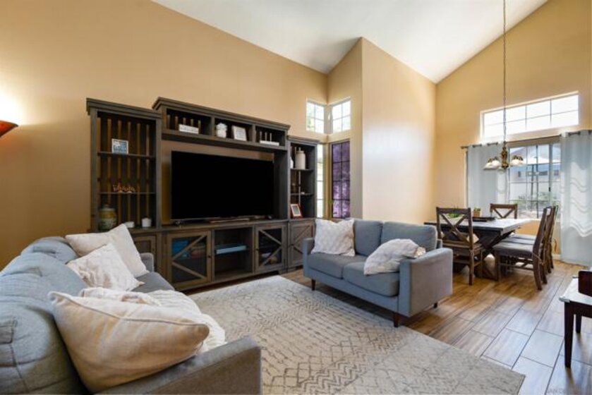 Experience refined living in this beautifully upgraded Murrieta residence, where modern elegance meets everyday comfort. Offering 4 bedrooms, 2.5 bathrooms, and approximately 2,155 square feet, this home is thoughtfully designed with both sophistication and functionality in mind. From the moment you step inside, you’re welcomed by stunning tile flooring that flows seamlessly throughout the main level, setting the tone for a clean, contemporary aesthetic. The heart of the home is the upgraded kitchen, featuring striking quartz countertops, stainless steel appliances, and abundant cabinetry and lots of natural light from the large windows. The layout creates a natural connection between the kitchen, dining, and living areas, allowing for effortless gatherings and a warm, inviting atmosphere. Upstairs, spacious bedrooms provide comfort and versatility, while the primary suite offers a private retreat to unwind and recharge. Step outside to your own private outdoor setting, enhanced by newly installed vinyl fencing that offers both style and privacy perfect for hosting, relaxing evenings, or creating your ideal backyard escape. A rare and highly desirable 3-car garage with EV Charger adds both convenience and flexibility, ideal for additional storage, recreational gear, or a customized workspace. Situated in a sought-after Murrieta neighborhood with NO HOA, known for its charm and accessibility, this home is just moments from top-rated schools, scenic parks, shopping, and dining. This is more than just a home, it’s a lifestyle upgrade. All measurements are approximate. Buyer's and Buyer's Broker/Agent should verify measurements and complete thorough inspections and investigations prior to Close of Escrow to satisfy themselves with the current condition of the property. Buyer(s) to verify and approve all data, reports, records, inspections, permits, MLS, HOA, if applicable and all information pertaining to the property prior to removal of contingencies. All contracts/offers are subject to seller approval and any offers or counteroffers by seller are not binding unless the entire agreement is ratified by all parties.