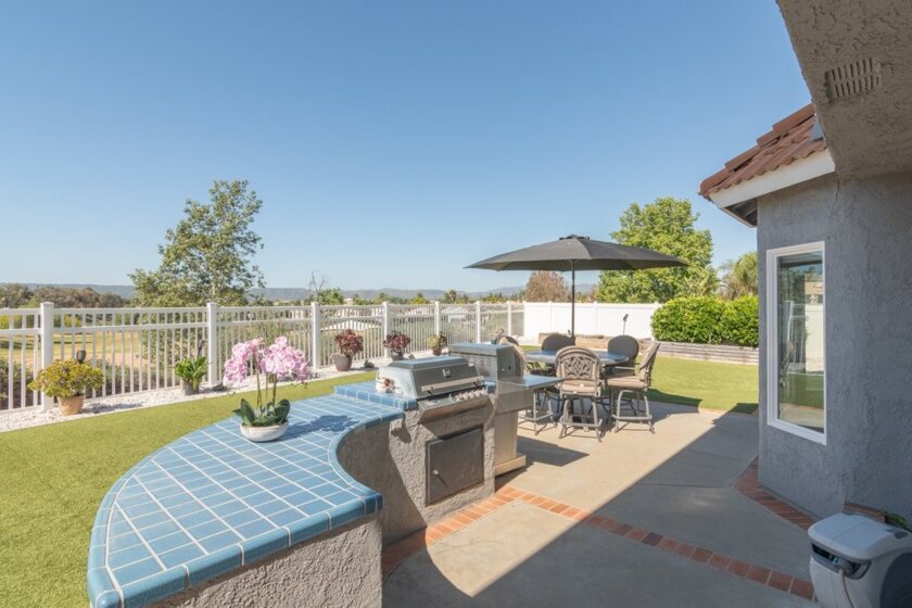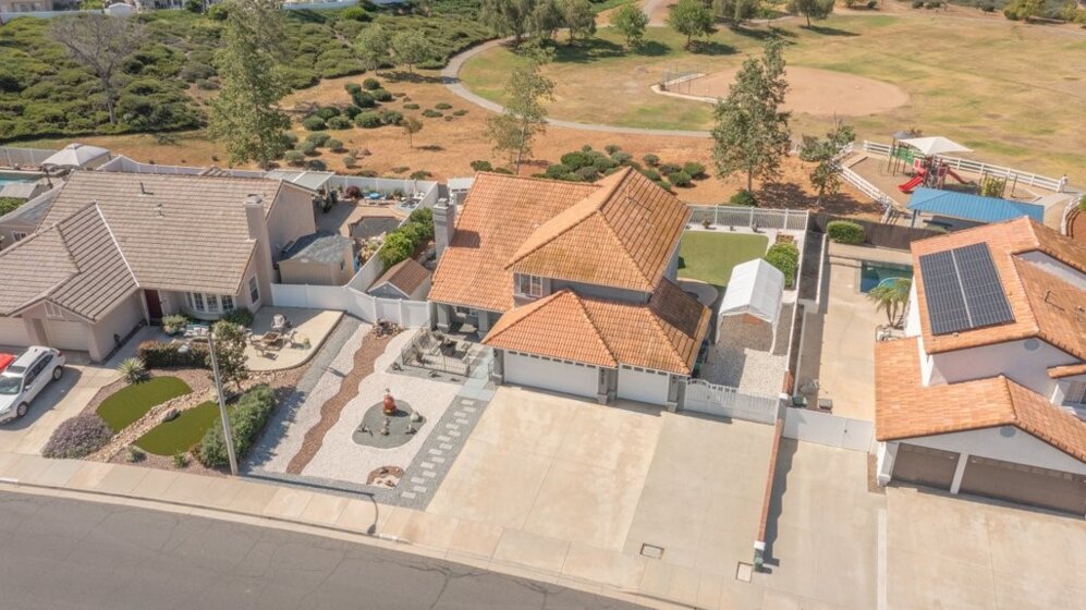 View lot overlooking Rancho Acacias Park! 4 bedroom, 2 ½ bathroom home located in a highly desired Murrieta neighborhood near top rated schools, shopping, and dining. Conveniently located with quick access to both I-15 and I-215. Large backyard with gazebo which overlooks the Park. White kitchen cabinets, kitchen sink and breakfast nook overlook views of the park. Generous primary suite with walk in closet. UV Dual Pane windows, plantation shutters, ceiling fans throughout, Murphy bed, wood burning fireplace. Outdoor grilling area, RV parking, vinyl fencing. Fruit trees (navel, Valencia, tangerine, grapefruit and two lime trees) and raised garden beds. Freshly painted interior and exterior. Low-maintenance landscape design with artificial turf in the backyard. Three car garage, Shed included. Perfect for outdoor entertainment. No HOA and low taxes.