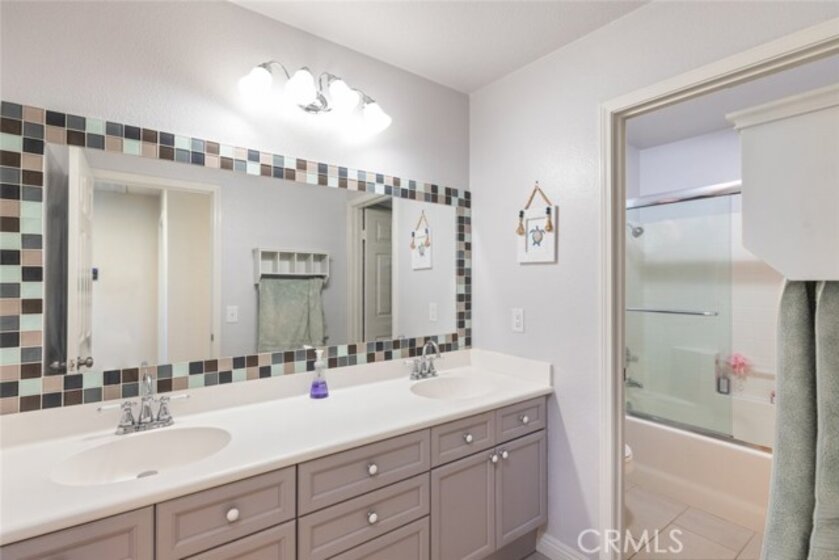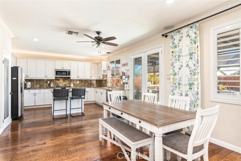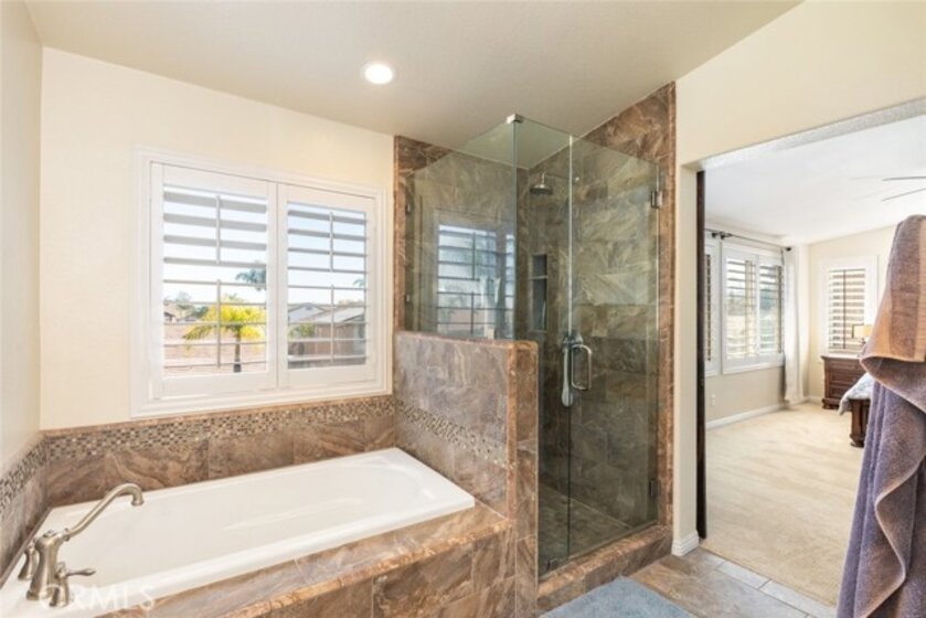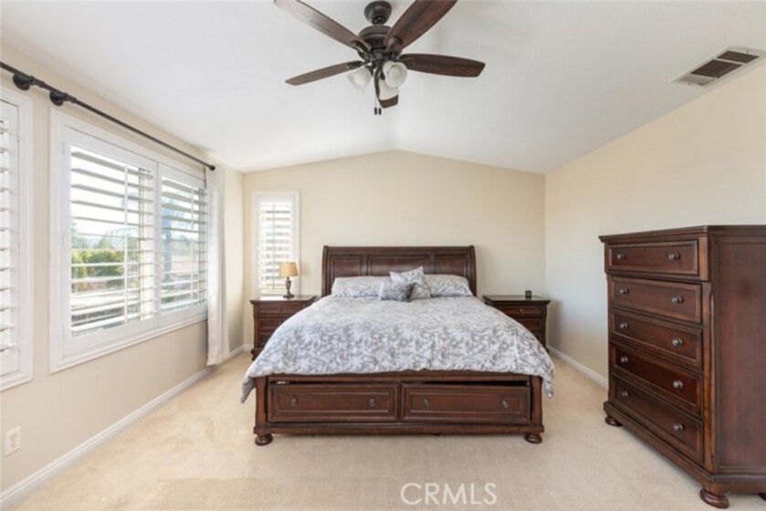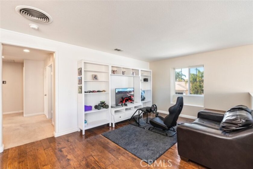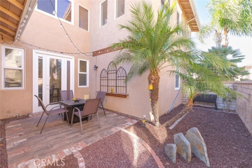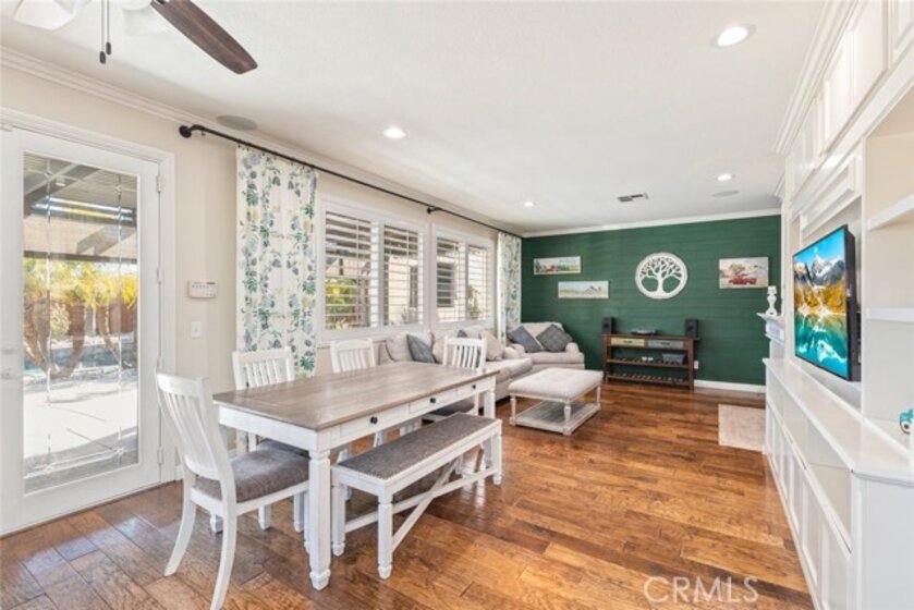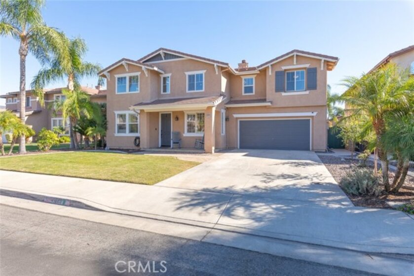 Discover your own slice of paradise with this stunning pool home with PAID OFF SOLAR! Once you step inside this beautiful home, and you'll be welcomed by soaring ceilings and gorgeous hardwood floors that flow throughout the main level. Right off the entry is an optional bedroom, complete with plenty of with custom leaded glass doors. Heading towards the heart of the home, and you'll find an open floor plan perfect for cooking, mingling, and making memories! The kitchen shines with updated cabinets, granite counter tops, and stainless-steel appliances—ideal for the home chef. Nearby, the living room is a showstopper with its shiplap accent wall, updated fireplace, and built-in TV area, adding both elegance and extra storage. Upstairs, an over sized loft/bonus area awaits, perfect for a pool table, movie marathons, or a fun hang-out spot for the kids. The second floor also houses two bedrooms, a guest bath, and a conveniently located laundry room. The primary suite offers a serene escape with plenty of space, plantation shutters, and an en-suite updated with wood cabinetry and custom tile work. Outside, get ready to be wowed by your own private oasis! An intimate courtyard sets the mood in the side yard that leads to a backyard that is built for fun, with a sparkling salt water pool, Jacuzzi, outdoor speakers, a built-in BBQ, and a covered patio built for entertaining with fan, TV and custom shades. This stunning Murrieta gem with NO HOA and PAID OFF SOLAR won’t last long. Come see it before it’s gone!