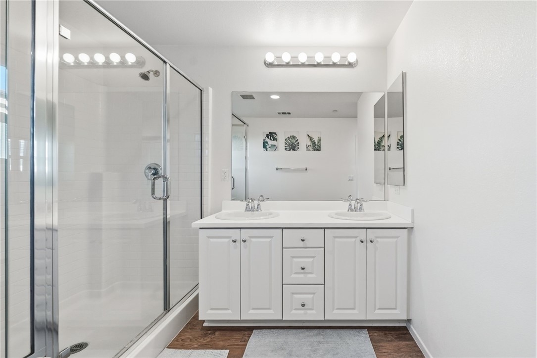 Winterberry is a beautiful end unit two story condo that truly lives and feels like a single family home. Showcasing approximately 1,728 sqft with three bedrooms, a spacious loft, two and a half bathrooms, a two car direct access garage with a rare full driveway plus a front yard and back yard. Other main property highlights include a tankless water heater, fully owned solar, a whole house fan, central AC, dual pane windows throughout plus a whole house water softener system. As soon as you walk into your new home, you will notice how light and bright the entire floorplan is. The entire downstairs portion of the home features laminate flooring. The living room is centrally located next to the chef's kitchen which has plenty of cabinetry for storage, stainless steel appliances, a stunning large island plus additional seating space in the adjacent dining room. There's also a downstairs half bath for guests as well as closet space and a pantry for storage. Upstairs a hallway connects all bedrooms as well as the large loft. The spacious primary bedroom has recessed lights, a ceiling fan and an ensuite primary bathroom with a walk in closet, dual sinks for the vanity and a walk in shower. The two guest bedrooms feature ceiling fans as well as sliding door closets. The upstairs hallway bathroom has a shower tub combo. Also upstairs you'll find a laundry room as well as a closet for storage. The wraparound backyard has plenty of space to entertain with a patio cover installed with an outdoor fan for those summer nights. There is also a garden bed on the side of the house for those who enjoy to garden. Located just down the street is the Santa Rosa Highlands community pool, kid's splash pool, playground, outdoor bbq area as well as a community clubhouse that is used to host events. Centrally located in Murrieta with nearby parks, shopping centers, Old Town Murrieta and great schools.