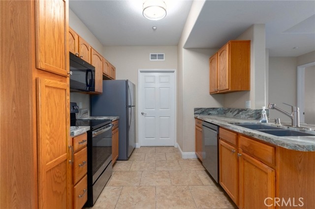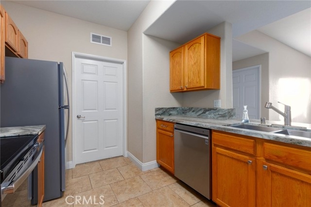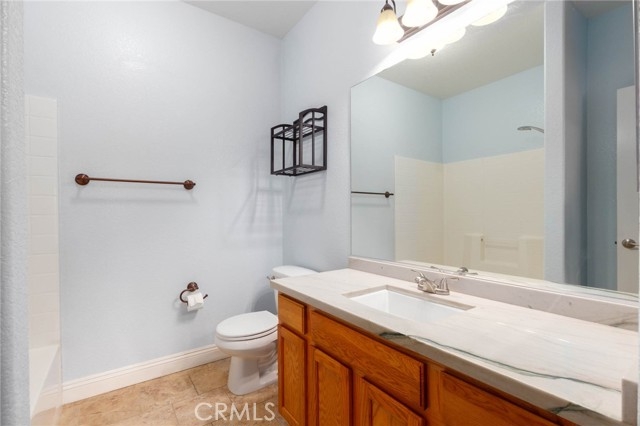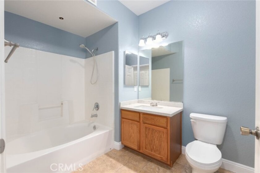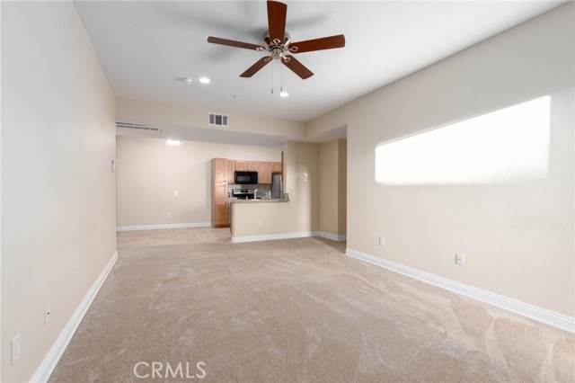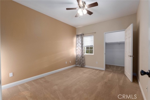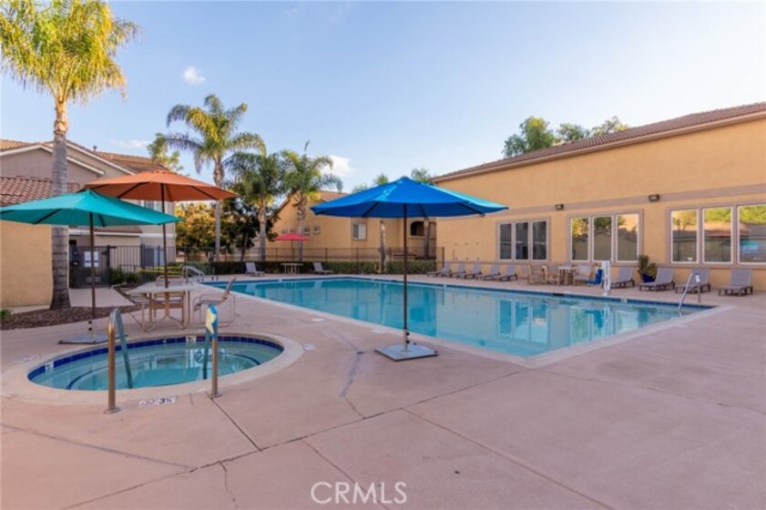 Super clean and spacious 3-bedroom, 2-bathroom upstairs condo located in The Reserves at Madison Park. The inviting living room features a cozy fireplace, recessed lighting, a ceiling fan, and access to a private deck perfect for relaxing. The eat-in kitchen includes a pantry, breakfast bar, and custom Fantasy Brown satin-finish marble countertops, and comes complete with a refrigerator. A convenient laundry room offers an electric dryer hookup. Both bathrooms have upgraded counters—Quartzite in the primary bathroom and Caesarstone Quartz in the guest bath. Additional features include neutral interior colors, paneled doors, and ceiling fans throughout. The home also includes a detached single-car garage. Community HOA amenities offer a pool and spa, fitness center, racquetball court, and clubhouse. Ideally located near shopping, freeways, and Old Town Murrieta, this condo offers comfort, convenience, and great community living.