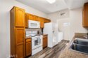 Discover the perfect blend of comfort and function in this well-maintained 2-bedroom, 2-bathroom condo. The open and inviting layout is designed to maximize both space and natural light, creating a warm atmosphere the moment you step inside. At the heart of the home, the living room provides a welcoming focal point with its charming fireplace and seamless connection to the dining area, ideal for both casual nights in and entertaining friends. The thoughtfully designed kitchen offers a full suite of clean white appliances, generous counter space, and a breakfast bar that makes mealtime effortless. The primary suite is a true retreat, offering a private en-suite bathroom and spacious walk-in closet for all your storage needs. A second bedroom adds versatility, perfect as a guest room, home office, or flex space tailored to your lifestyle. Outside your door, a range of resort-style amenities awaits. Cool off in the sparkling pool, relax in the spa, or stay active with a racquetball match or a workout in the on-site gym. A detached 1-car garage adds both convenience and peace of mind, offering secure parking and extra storage. This home is more than just a condo, it’s a lifestyle upgrade, balancing comfort, practicality, and community. Don’t miss your chance to call it your own.