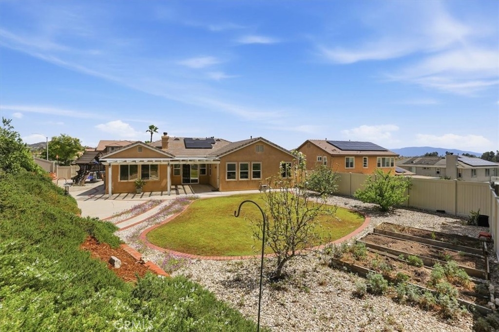 This a rare opportunity....The first time this home has come to the market in 23 years! 2nd owner is relocating and sad to leave their dream home, which they have taken meticulously care of. This 2700+ sq ft single story is located on a 15,000 sq foot landscaped lot with an aluma-wood covered patio and a large side yard area for potential RV parking. The interior has real cherry wood floors, crown moldings, with a wide open floorplan and a huge kitchen. The island kitchen has Quartzite counters with Bosch appliances, load of cabinets and opens to the family room with a fireplace. The plan offers 4 good sized bedrooms, 2.5 baths plus a home theater room. The primary suite comes with a massive walk in closet, fireplace, dual vanities and a separate tub and shower. The home comes with all appliances, a whole fan, multiple ceiling fans, and a whole house Hepa filter system. In the past few years, the roof has been redone, and a full solar system was installed and is free and clear, and it even comes with an EV charger in the garage. Single story homes in this area with Low taxes and no HOA don't come along very often! There is plenty of space to add an ADU as well