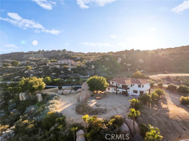 Welcome to Sunrise on Hacienda Dr — your own slice of California countryside living. This isn’t just a home; it’s a way of life, where every sunrise over the hills reminds you that you’re somewhere truly special. Set in the heart of the La Cresta Highlands, this inviting hacienda-style retreat sits on a scenic hillside surrounded by natural rock formations, mature trees, and endless sky. Inside, the home blends warmth, character, and thoughtful craftsmanship. You’ll find smooth Venetian plaster walls and ceilings, rich wood flooring, tall custom doors with detailed millwork, and iron railings that add a touch of rustic charm. Soft lighting and natural textures give the entire space a cozy, refined ranch feel. A double-sided fireplace anchors the main living areas, and large custom bifold doors open wide to the outdoors—ideal for morning coffee, sunset dinners, or simply soaking in the sweeping valley and mountain views. The primary suite is your personal escape, complete with a private deck that feels like a front-row seat to nature. The en-suite bath features a soaking tub, a walk-in shower, and dual sinks—everything you need to unwind. Outside, the land is beautifully landscaped with California oaks, Canary and California palms, olive trees, drought-tolerant cacti, and distinctive rock outcroppings, all bordered by vinyl fencing for a clean, classic look. There’s plenty of usable space to add a pool, barn, or guest house—giving you room to grow, create, and make the property your own.