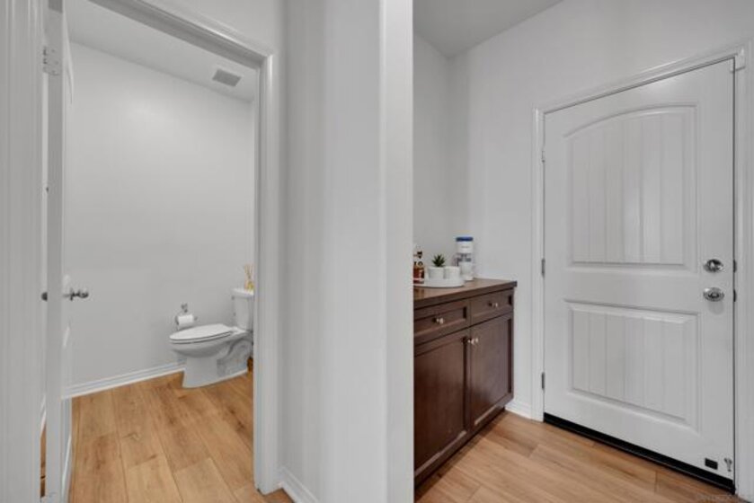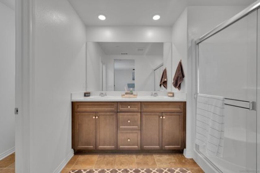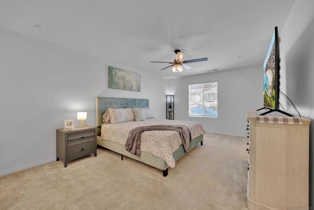 One of the best values under $500,000 in Murrieta, this almost new 2022 Lennar Smart townhome offers 3 bedrooms, 2.5 baths and nearly 1500 sq. ft of modern living just minutes from convenient shopping and restaurants in 3 directions including quaint downtown Murrieta. With freshly painted interiors, enter from the 2-car connected garage into the open-concept main level which showcases a modern kitchen with rich espresso colored cabinetry, stainless steel appliances, granite countertops, and an extended breakfast bar perfect for bar-stool seating. The kitchen flows seamlessly into the adjacent dining area and living room, all accented by beautiful wood-look laminate flooring. A convenient half bath for guests completes the downstairs. Upstairs, the oversized primary suite features an ensuite bath with dual-sink vanity and an extra-large walk-in closet. Two additional bedrooms, a full bathroom, and a dedicated laundry room complete the upper level. Keep cool with ease utilizing the whole house fan or run your central AC with assistance from solar panels that keep energy bills low. Out front, the private fenced patio opens directly to a charming children’s play area with a gazebo and picnic tables. The beautiful Solara community also offers a refreshing pool, spa, and community BBQ area. The covered picnic table area complete with a rentable kitchen is excellent for hosting pool parties for friends and family year round in beautiful SoCal weather. Perfect for first time home buyers ready to stop renting in San Diego or Orange County and want to build their own equity. Situated in the highly rated Murrieta Valley School District and directly across from Murrieta Valley High School, this home offers small-town charm with unbeatable convenience. With easy access to 15 and 215 freeways, enjoy a walkable lifestyle visiting nearby popular restaurants, cozy coffee shops, a twice-monthly Farmers Market, and the famous annual Murrieta Rod Run.