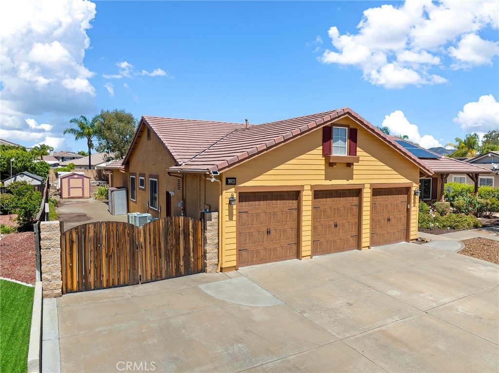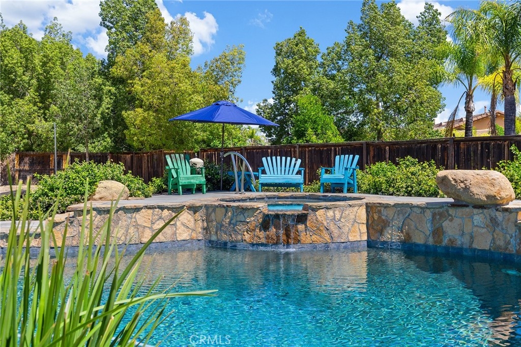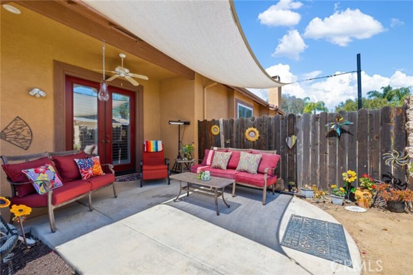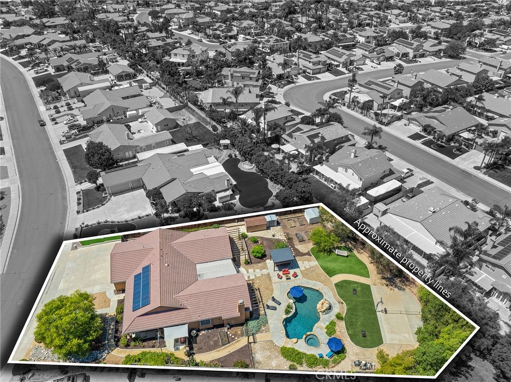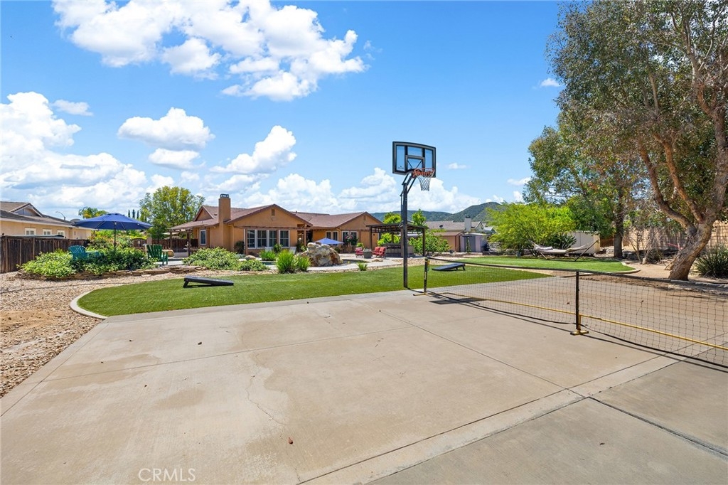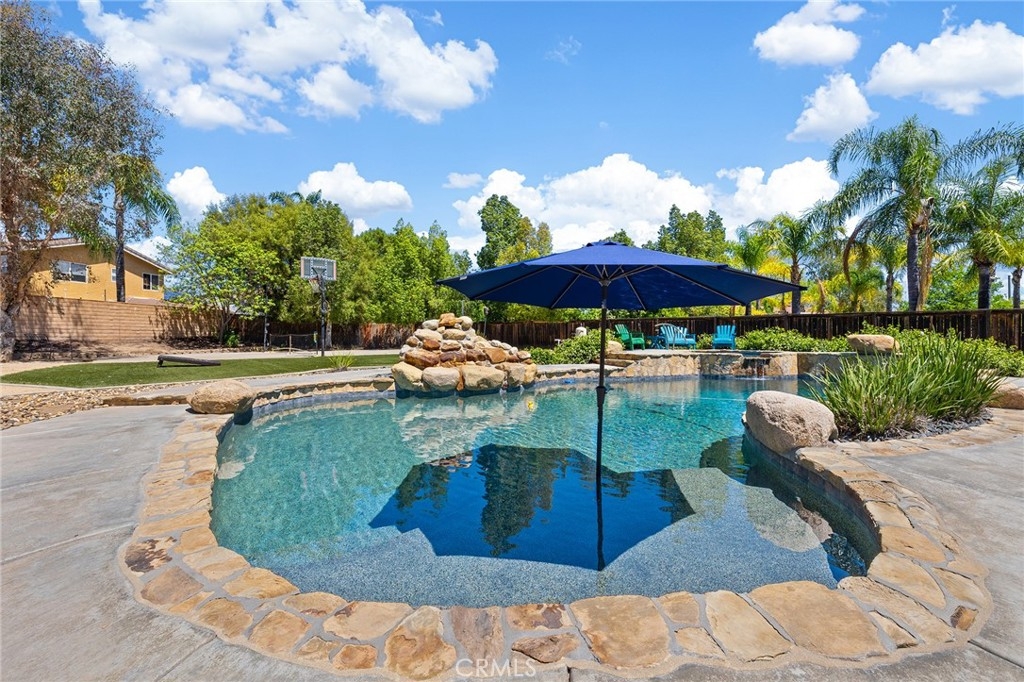 HALF-ACRE LOT, POOL & SPA, RV PARKING, SINGLE-STORY, SOLAR! Beautiful home in desirable West Murrieta neighborhood Murrieta Ranchos, situated on a .56 acre lot, open floorplan 3,084 square foot 4-bedroom plus theater room/ guest room, and 2.5 bathrooms. Formal Living & Dining rooms, huge kitchen open to the Family room, gas fireplace with raised hearth, spacious Primary Suite with ensuite bathroom; dual sinks, separate tub & shower, walk-in closet, and a doorway to the backyard. Hall bathroom has dual sinks & a separate shower area. Theater room also serves as a guest room, with a Murphy bed/ desk. Indoor laundry room with utility sink & plenty of cabinets. Wood-look tile flooring, plantation shutters, new carpet, new interior paint. Amazing yard with pebble-tech pool & spa, sport court, covered BBQ area with fridge, 2 gardens with raised garden beds, a large grassy area, gated RV parking, and 2 patio areas. House is equipped with 17 solar panels to lower energy costs. No HOA, and low taxes! This is a one-of-a-kind property!