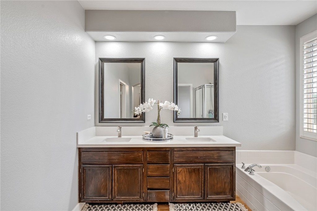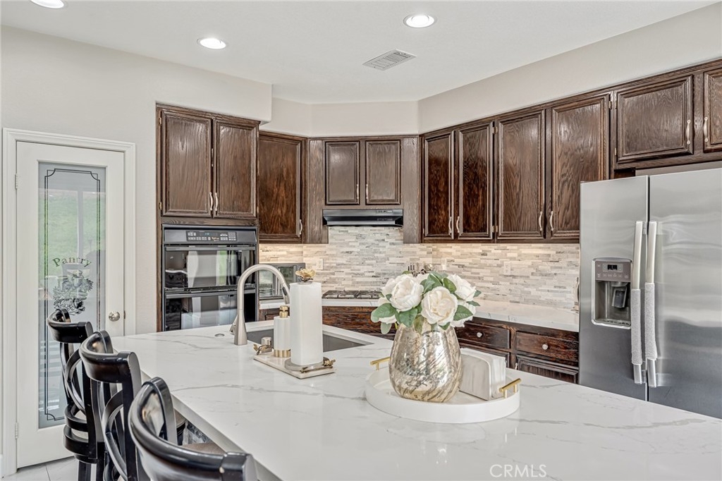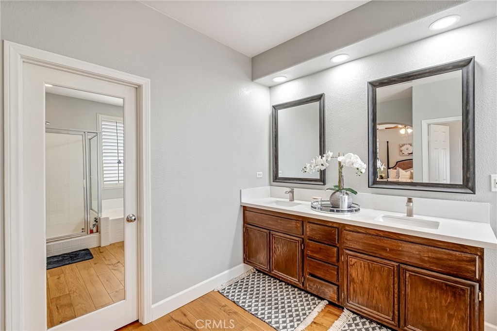 Welcome to an exquisitely reimagined residence nestled in one of West Murrieta’s most coveted neighborhoods, where timeless elegance meets modern sophistication. This move-in-ready home offers 4 beautifully appointed bedrooms and 3 full baths, complemented by a downstairs office that effortlessly transforms into a fifth bedroom, private study, or refined guest retreat. Every detail has been thoughtfully curated, showcasing ¾-inch solid oak wood flooring throughout the entire home, creating warmth, continuity, and an unmistakable sense of luxury. The heart of the home is a designer kitchen, adorned with upscale finishes, modern custom cabinetry, and sleek countertops—perfectly suited for both intimate evenings and elevated entertaining. Beyond its beauty, the home offers peace of mind with fully paid-off solar, a brand-new water heater, and a new pool heating system, ensuring comfort and efficiency year-round. Step outside to your private backyard sanctuary, where a fully upgraded pool invites sun-soaked afternoons and starlit gatherings—your own resort-style escape. Additional highlights include RV access for ultimate convenience and a location that places you moments from top-rated middle and high schools, premier shopping and dining, and effortless access to the I-15 and I-215 freeways. This is more than a home—it’s a lifestyle of comfort, refinement, and quiet luxury. A rare, turn-key opportunity that must be experienced to be fully appreciated.