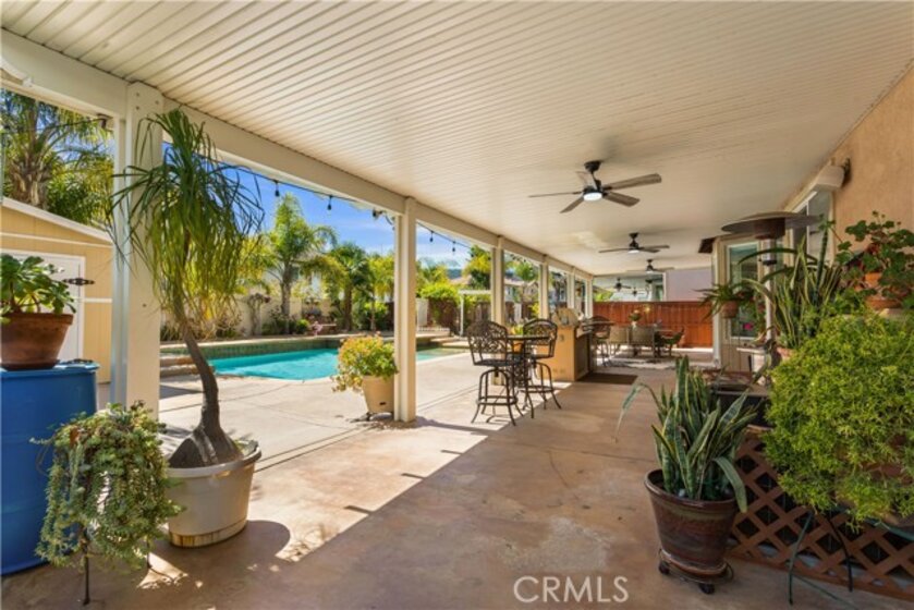 Original owners! Welcome to the very best of both worlds in West Murrieta’s most sought after location, where you can maximize and enjoy peaceful living and Murrieta’s best trails within minutes walking distance with views of the Santa Rose Plateau and watch the breathtaking colorful sunsets while being a few minutes away from shopping, entertainment, walking distance to award winning schools and easy access to the 15 freeway! Head on over to the playground in Sykes Ranch Park where the winters bring about a beautiful creek or gaze at the famous Eucalyptus tree grove that is popular among many photographers. This RARE floor plan by Pulte features a luxury beach entry Pool and Spa, 6 bedrooms, a large loft and 4.5 bathrooms! As you enter the home through glass upgraded double doors with dramatic foyer, grand staircase and cathedral ceilings! Custom tile flooring, designer lighting, colonial doors, formal living room and separate dining room with a butler’s pantry that leads to the heart of the home where a chef’s kitchen features another dining area, brand new High-End stainless steel appliances to include two brand new ovens with steamers, 5 burner stove, new hood, granite counters, pullouts in cabinets and an additional sink in the island with seating. The kitchen opens up to a large family room with cozy fireplace and adorned with windows for natural light. There is a downstairs bedroom with full bathroom perfect for overnight guests or live-in relatives. Upstairs features include double doors to an expansive master bedroom suite with a retreat area, an upgraded private bathroom with custom tile, dual sinks, separate vanity area, shower and adjoining Roman step up bathtub and walk-in closet. The upstairs large loft is perfect for a game room or can even be converted into a bedroom, there is also another bedroom suite with private full bath and two additional bedrooms sharing a Jack & Jill bathroom. The final large bedroom can also function as an office/tech area, home theater or playroom. The yard is truly an entertainer’s paradise with an outdoor shed, shower, a large Alumawood patio cover with 3 new fans for those warm summer days and a built-in barbecue island with Bull BBQ, fridge, sink, heated pool & raised spa along with fruit trees and beautiful foliage. More features include separate laundry room w/ utility sink, vinyl fence and RARE 4 car tandem garage allowing plenty of space to park a large SUV/pick up or boat, dual AC units and solar screens.