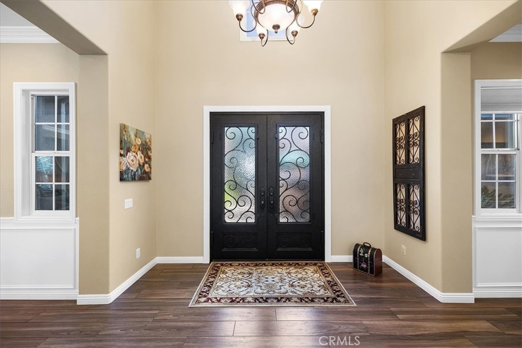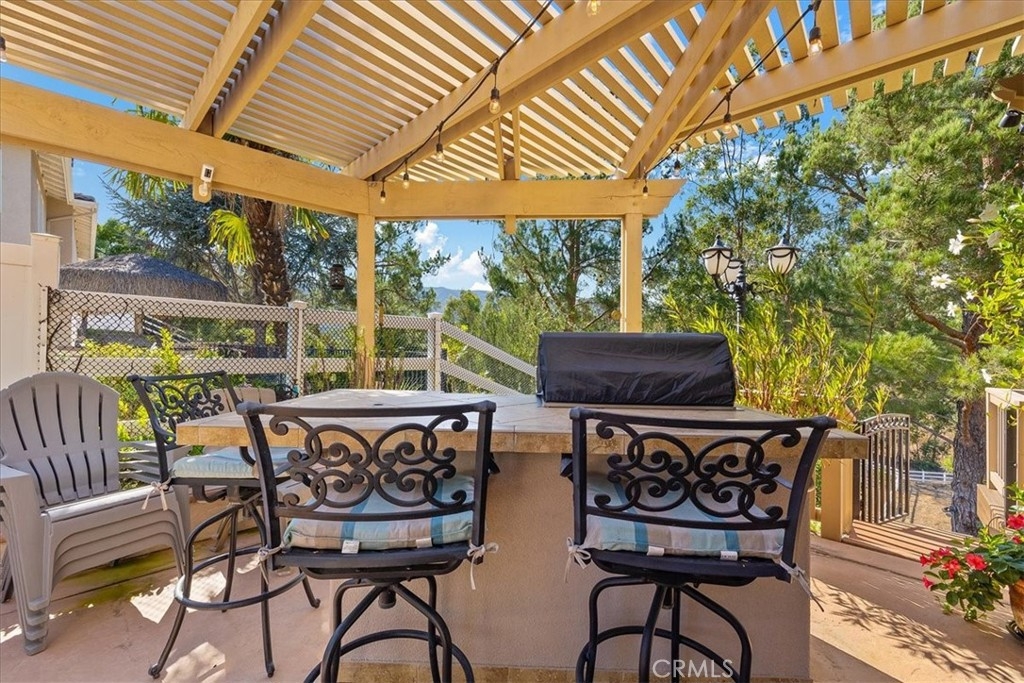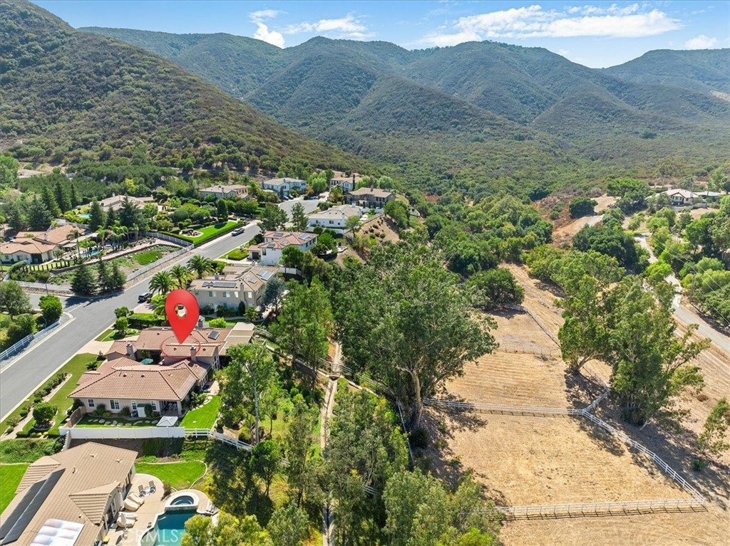 Welcome to 42926 Joshua Tree Court – where luxury, and lifestyle meet. This stunning single-story home sits on a premium lot in the highly sought-after gated community of Olive Hill Ranch Estates in Murrieta’s quiet west side. Tucked away in a peaceful cul-de-sac, the property offers incredible views of surrounding mountains and a sense of seclusion. You will enter through a lovely courtyard with an outdoor fireplace and through beautiful iron and glass double doors. Inside, you will be delighted with the open floor plan that is designed for both comfort and functionality. The heart of the home is the spacious great room with a chef’s kitchen, perfect for entertaining and everyday convenience. This well-appointed kitchen features granite countertops, stainles steel appliances, built-in fridge, a large center island, a walk-in pantry, a butler’s pantry, and insta hot water. Additional features include a formal dining rooom, living roon, den, laundry room, mud room with courtyard and garage access, and a museum-quality 3-car garage outfitted with custom cabinetry and durable coated floors. The home is also energy-efficient with 32 fully owned solar panels. The primary suite opens to its own patio where you can enjoy some quite time. The primary bath has a large soaking tub and spacious walk-in shower. One of the secondary bedrooms has a full bathroom attached. Step outside to your private backyard retreat with a large, covered patio and deck extension, dual ceiling fans, built-in misting system, fire pit, above-ground spa, built-in BBQ kitchen, and outdoor TV setup—perfect for morning coffee, summer nights, parties, and Sunday football gatherings. Outdoor enthusiasts will appreciate the nearby Santa Rosa Plateau with trails for hiking or mountain bike riding. Additionally, there is a nearby equestrian center to board your horse or keep in on your property in the expansive lower area. Good times are to be had at nearby Old Town Murrieta and Temecula’s world-class wineries. This home is more than just a place to live—it’s a lifestyle. Come see for yourself why 42926 Joshua Tree Court is truly one of a kind.
