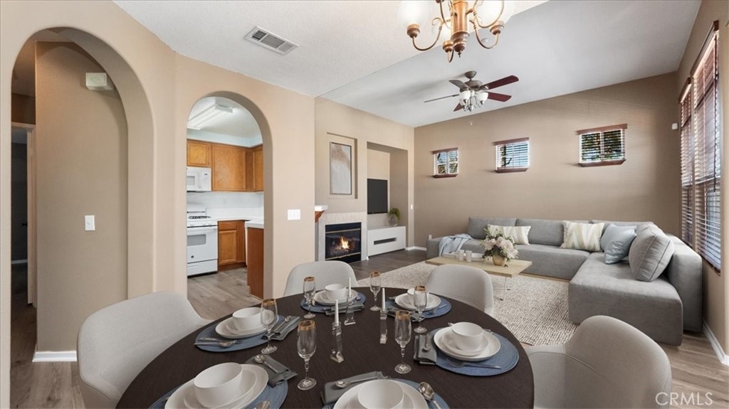 Welcome to this charming, move-in ready 2-bedroom, 2-bathroom home located in the desirable gated community of Montego Bay! Featuring beautiful laminate flooring throughout, fresh interior paint, and a cozy fireplace in the inviting living room, this home offers comfort and style. The dining area is warm and welcoming, perfect for family meals or entertaining guests. The kitchen is equipped with a nearly new stove and ample cabinet space, providing everything you need to create your favorite meals. Abundant natural light pours in through the installed blinds, creating a bright and airy atmosphere. Enjoy the refreshing comfort of the brand-new AC, keeping you cool and comfortable all year round. Step outside to enjoy fresh air and unwind on the relaxing balcony. The home includes a 1-car garage for convenience. Savor the peaceful atmosphere of the neighborhood, complete with a resort-style pool and spa. Additionally, appreciate the beautifully maintained landscaping as you stroll along the communal walking paths. Just minutes from the renowned Temecula wineries! Make this beautiful home yours! Showings after first Open House First private showings will be after the first Open House